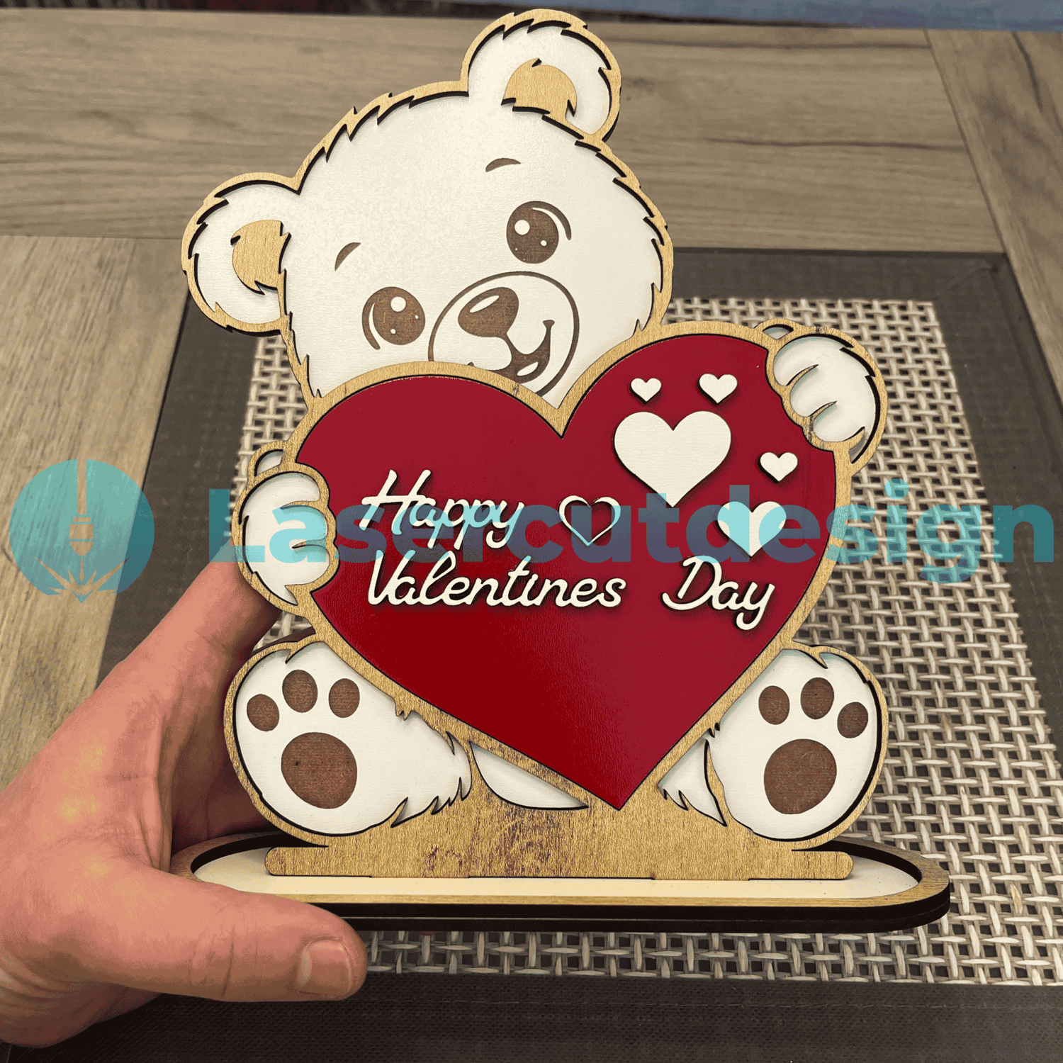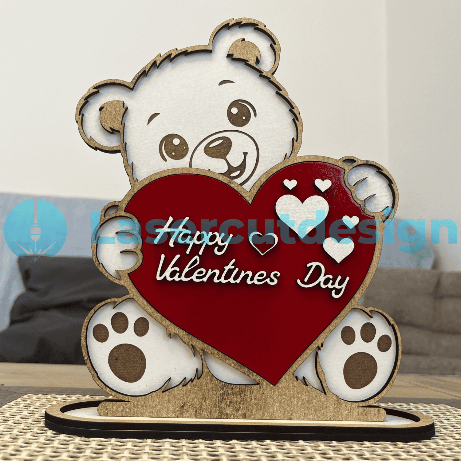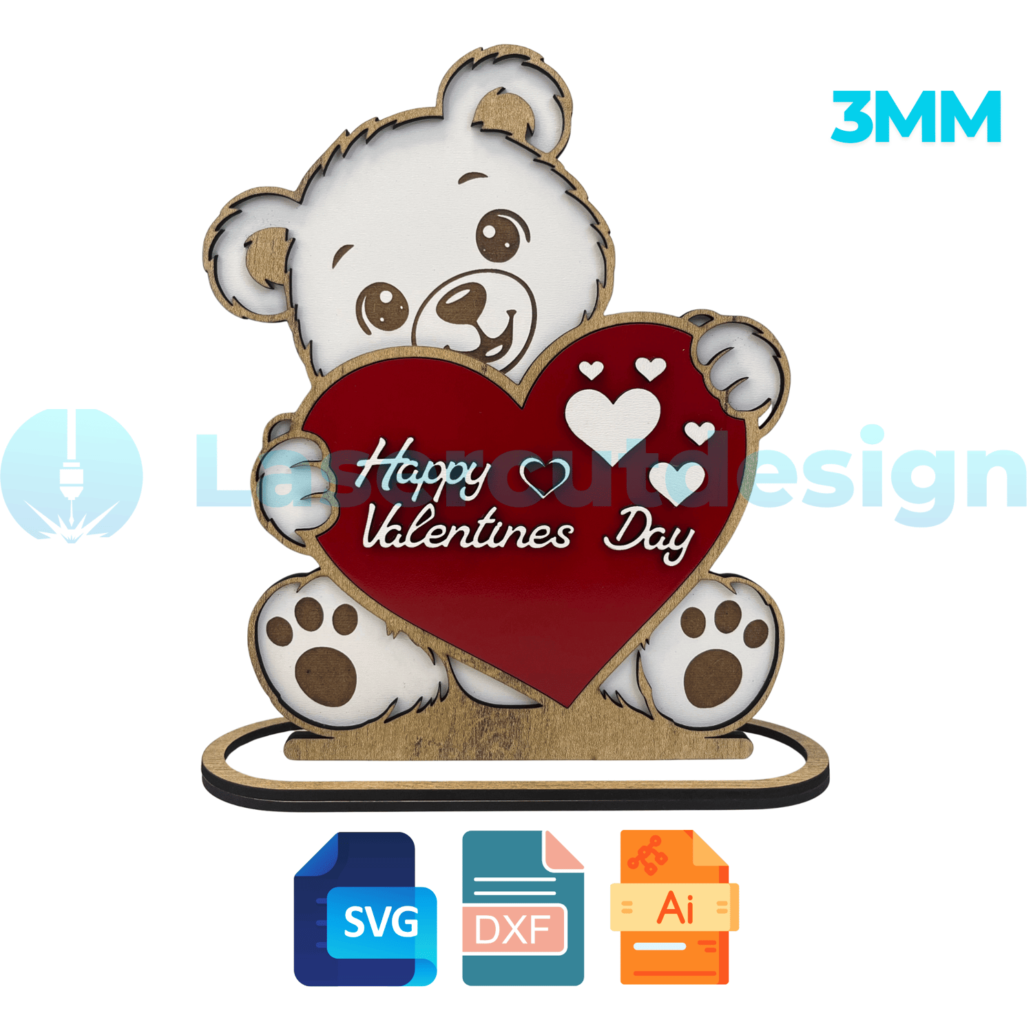 Valentine Bear SVG DXF AI | Cute Teddy Bear Laser Cut File | Happy Valentines Day Sign | Love Decor 3mm