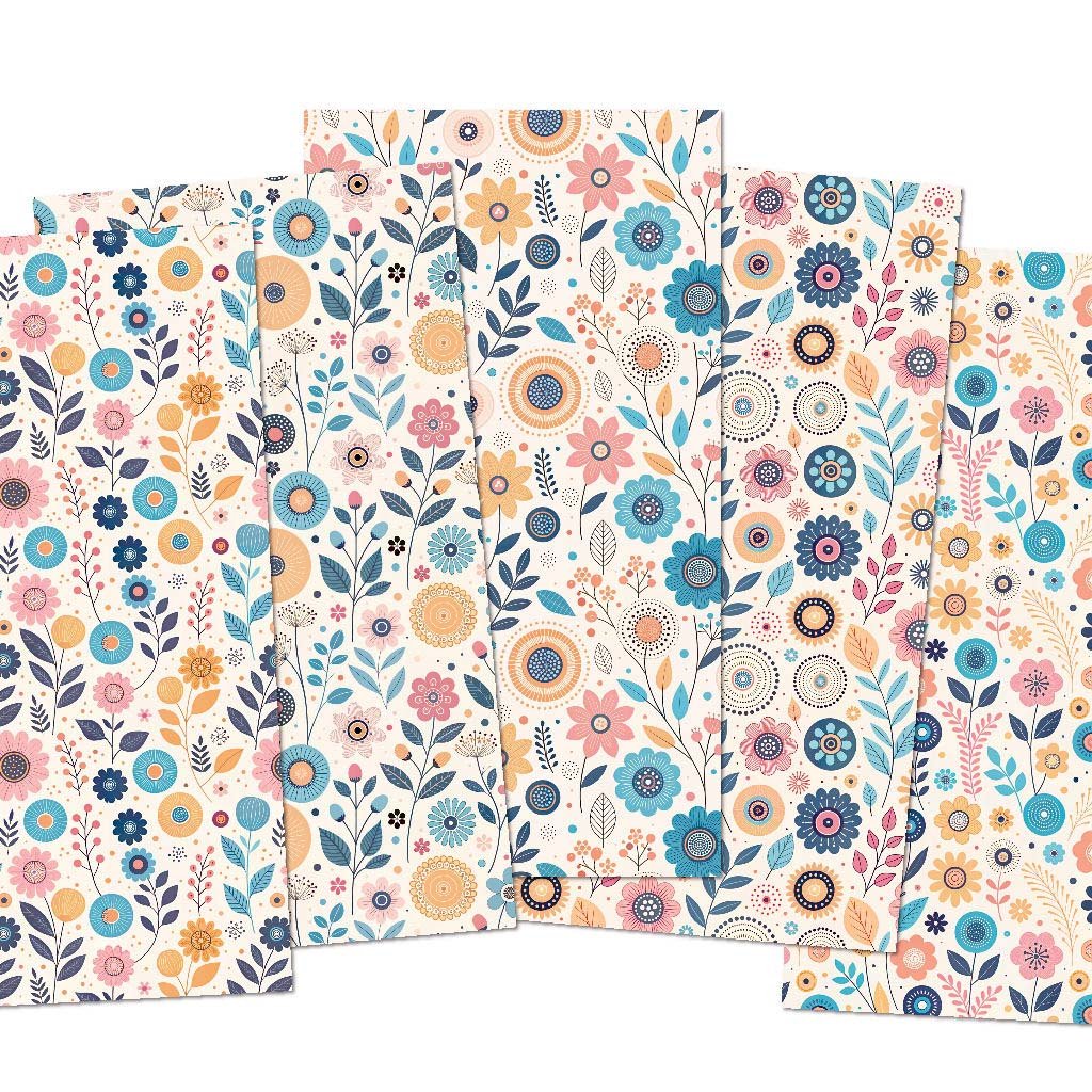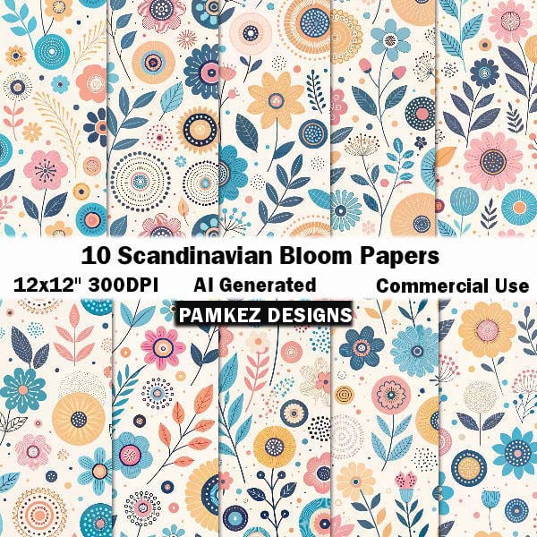 AI Scandinavian Bloom Papers - Seamless Pattern, Digital Scrapbook Paper Pack, Commercial Use