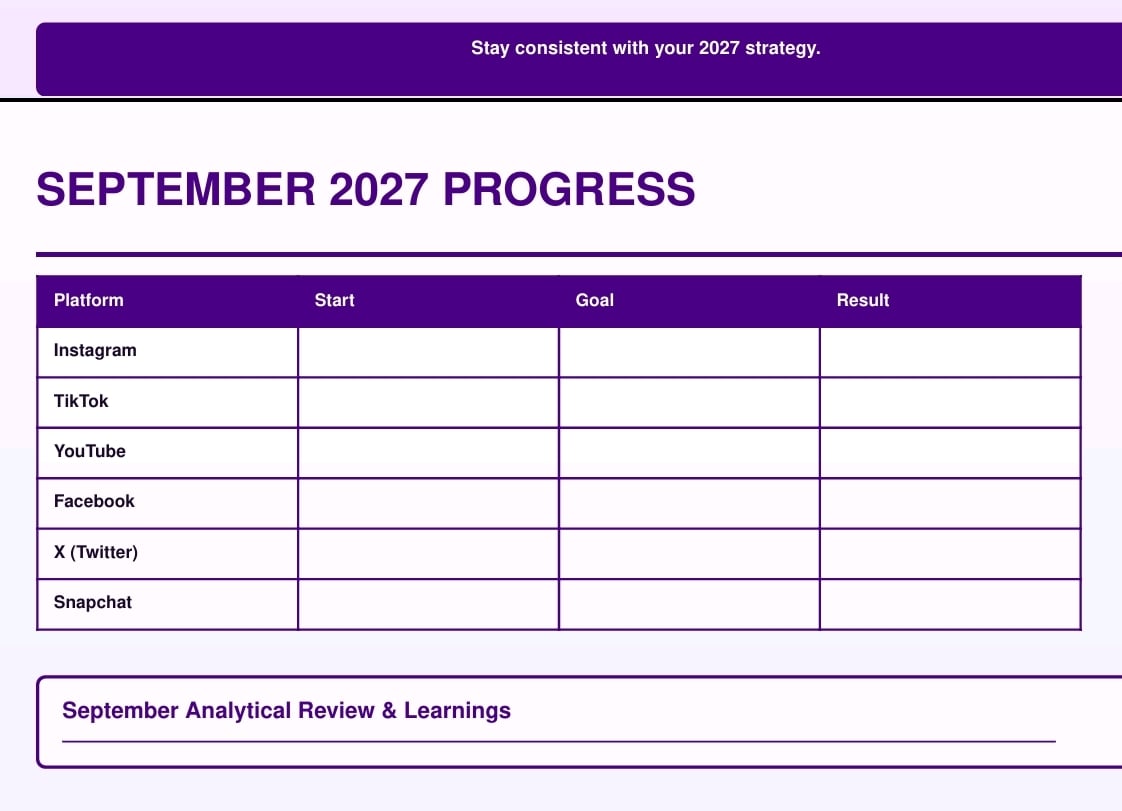 Bonus Tip: Use the monthly review sections to analyze your best AND worst posts — that’s where real strategy improvements happen.