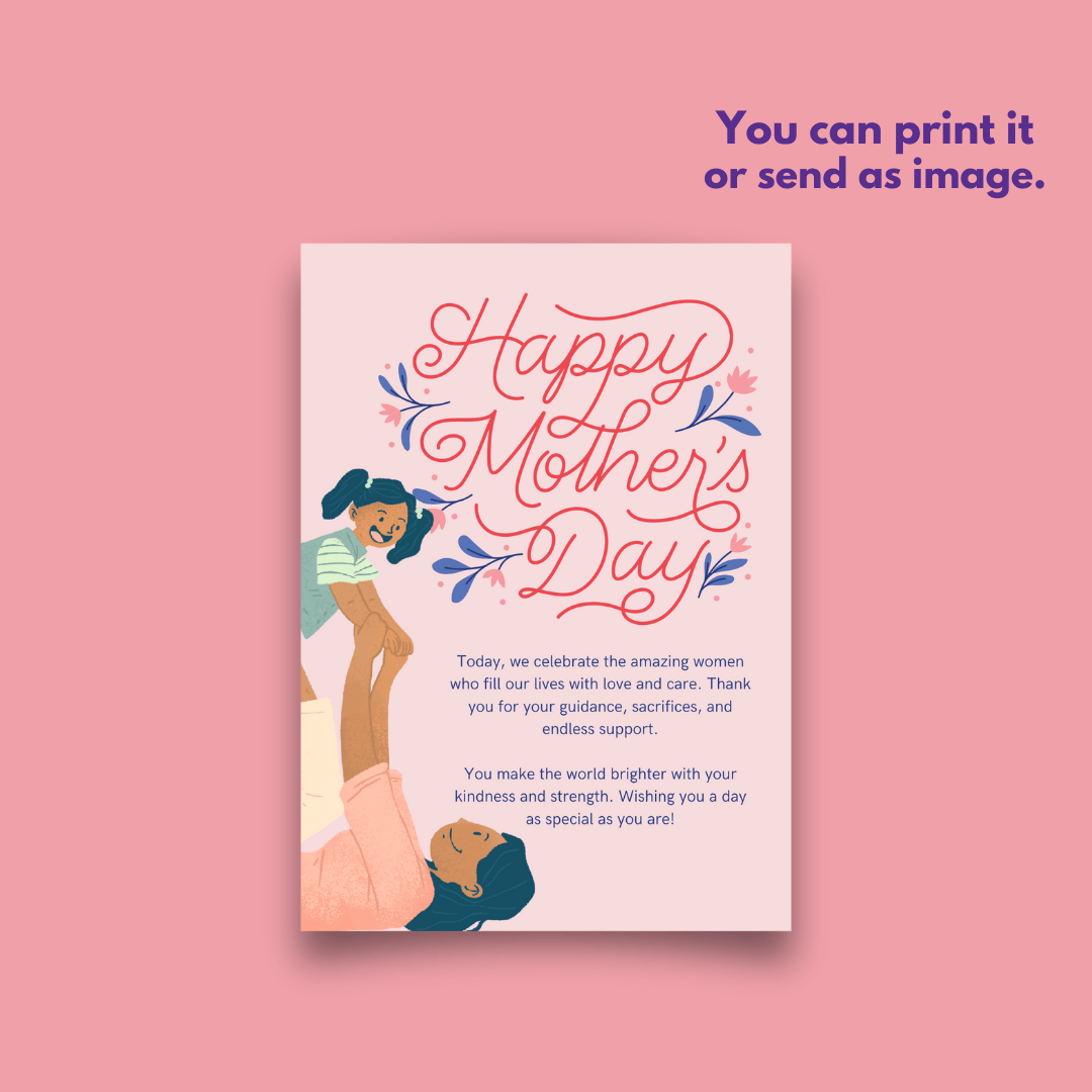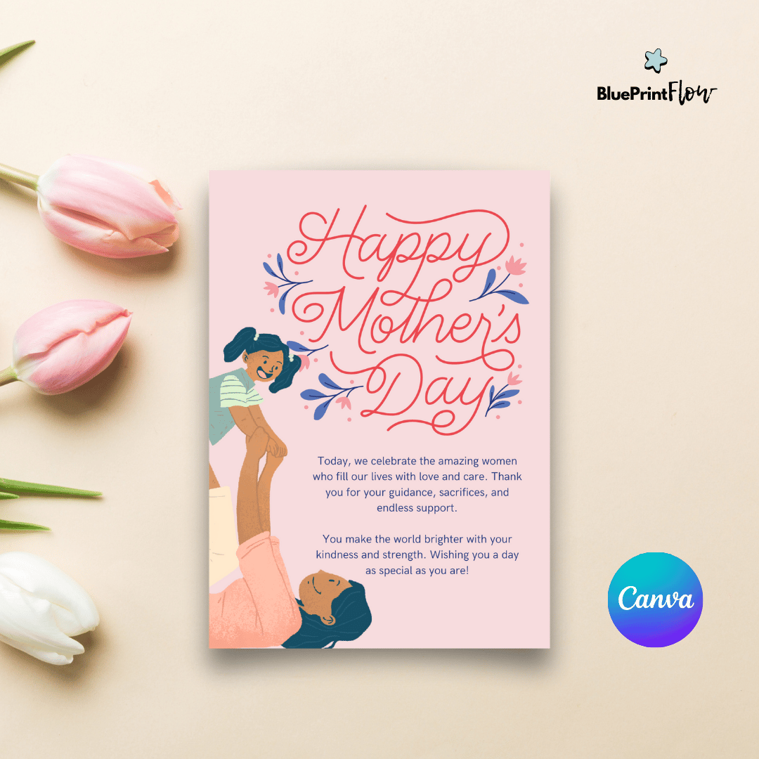 This classic and elegant printable card is perfect for sons and family members to give to their mothers, making them feel special and appreciated. The soft pink tones, beautiful illustration, and refined typography create a warm and heartfelt design. Easily customizable and downloadable, this simple yet meaningful card is a perfect way to show appreciation.