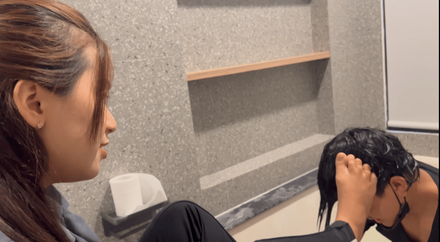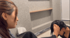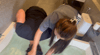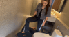 In a very small room (bathroom) she easy controls one loser ony with one leg