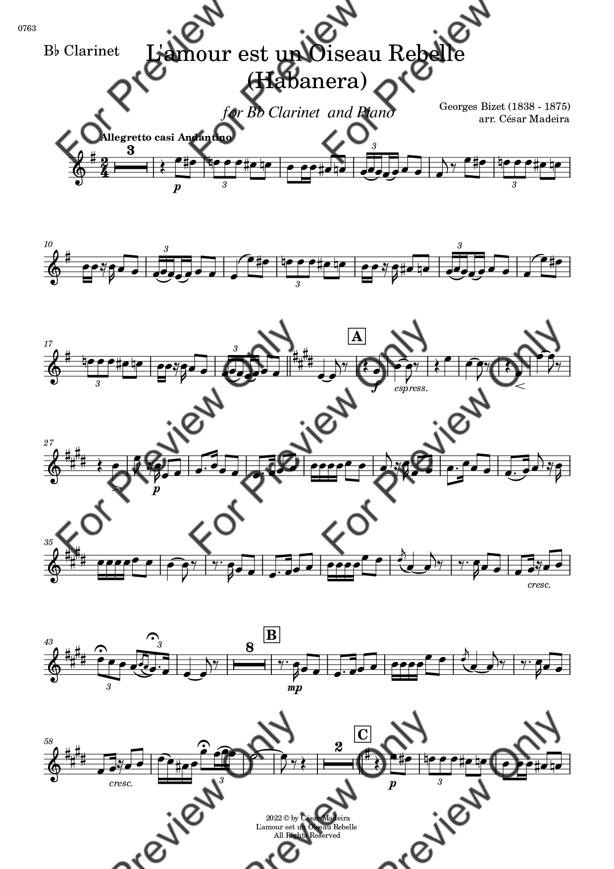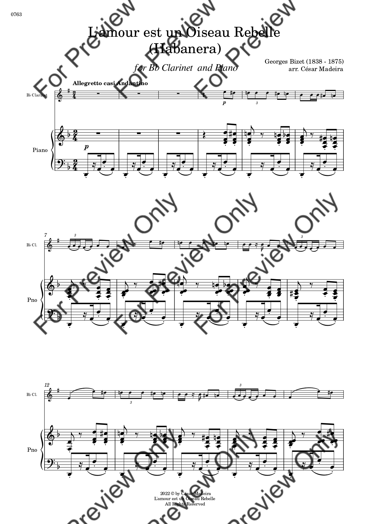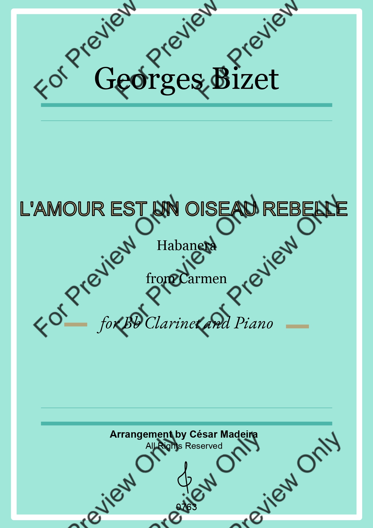 Habanera by Georges Bizet. Arrangement for Bb Clarinet and Piano. With Full Score and Individual Parts. Have fun!