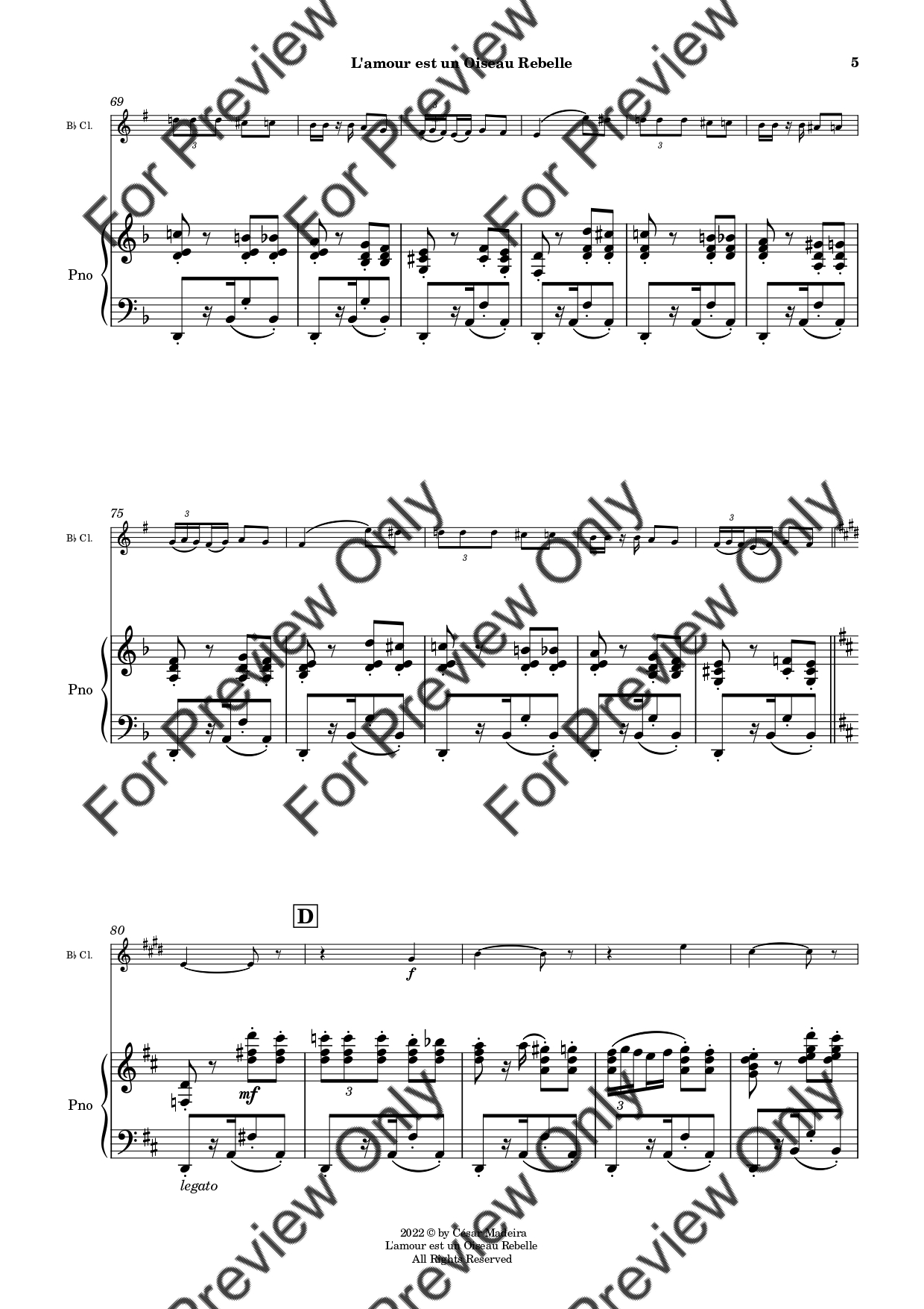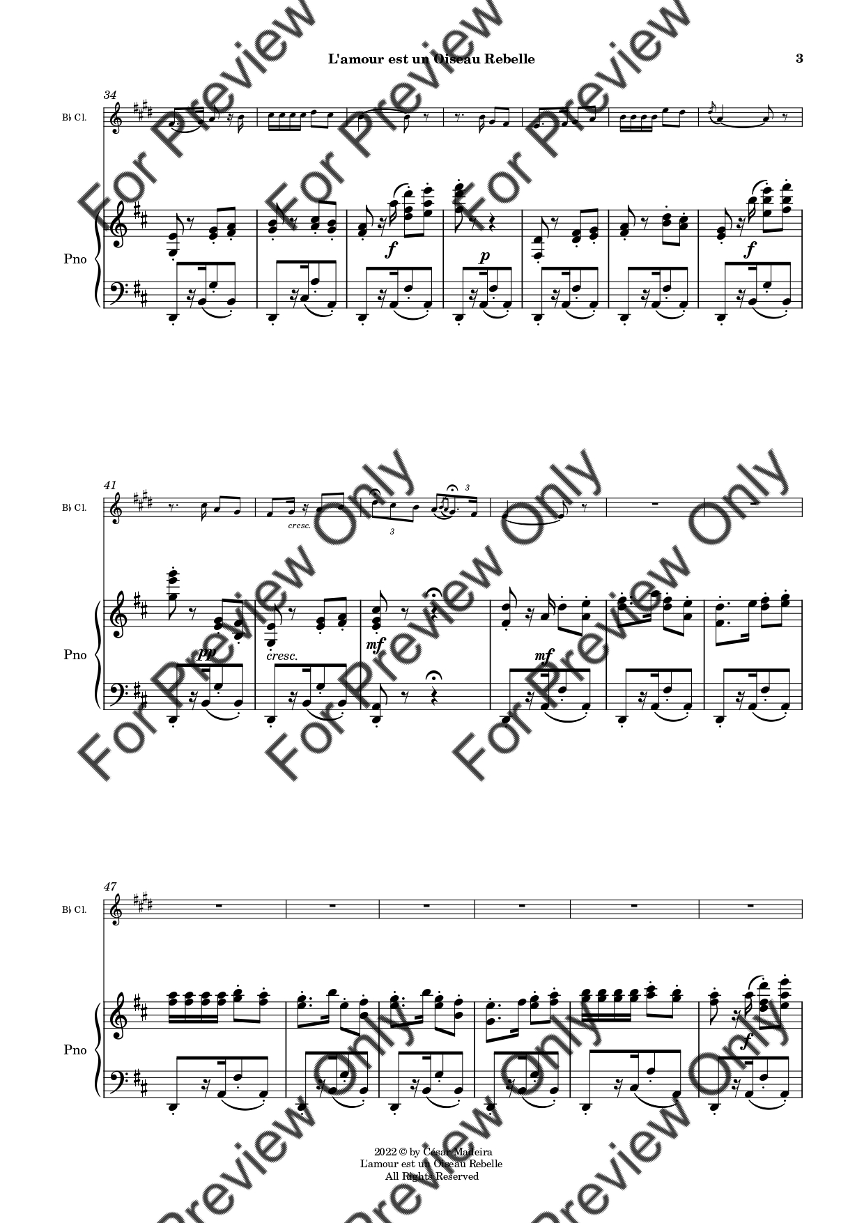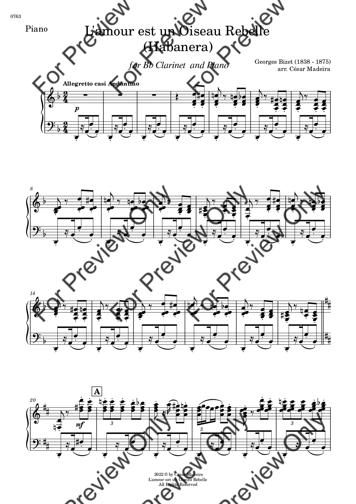 Habanera by Georges Bizet. Arrangement for Bb Clarinet and Piano. With Full Score and Individual Parts. Have fun!