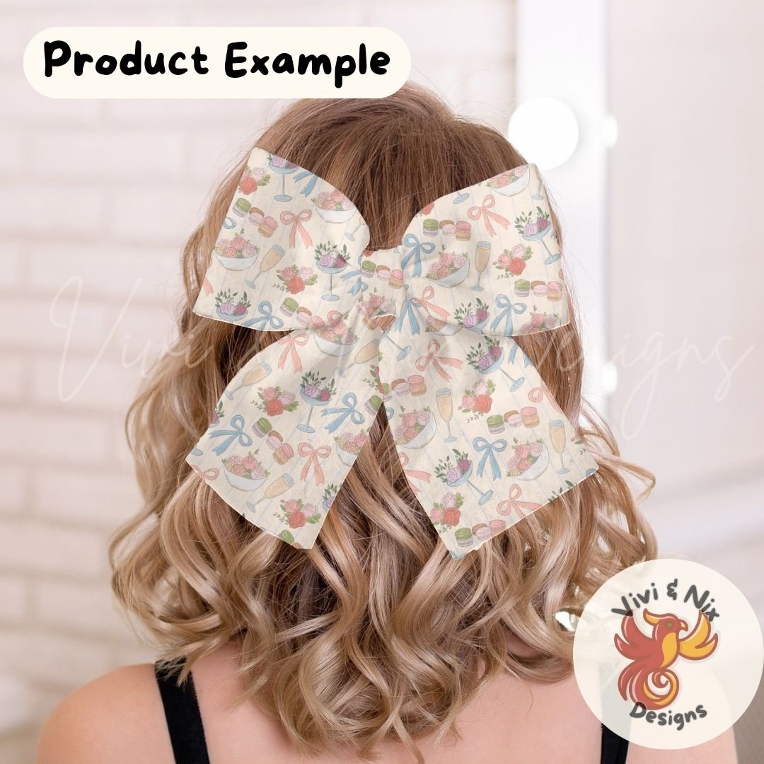 Blush Brunch Seamless Pattern PNG, Floral Champagne Bow Macaron Design, Hand Drawn Elegant Garden Digital File