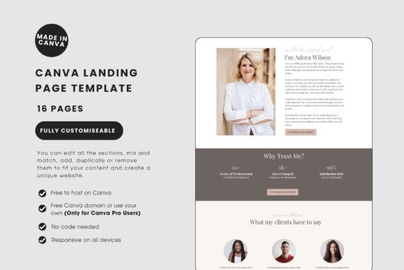 ✔ You will need a Free or Paid Canva account to be able to access the website template.