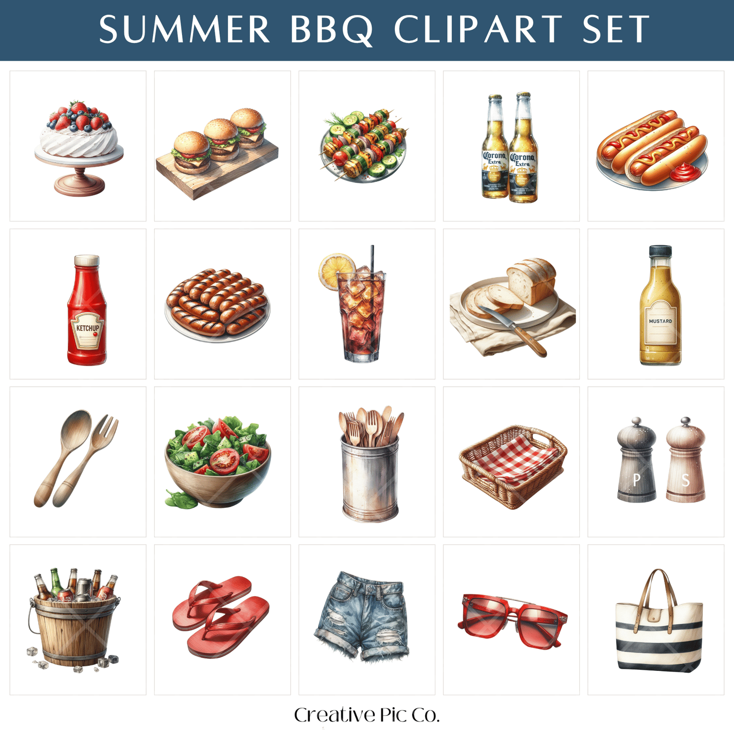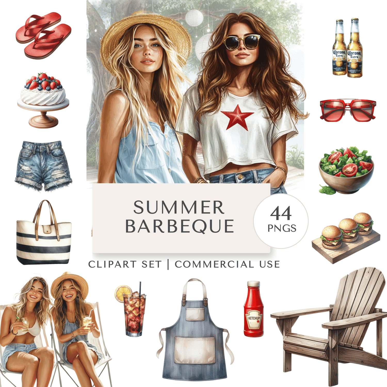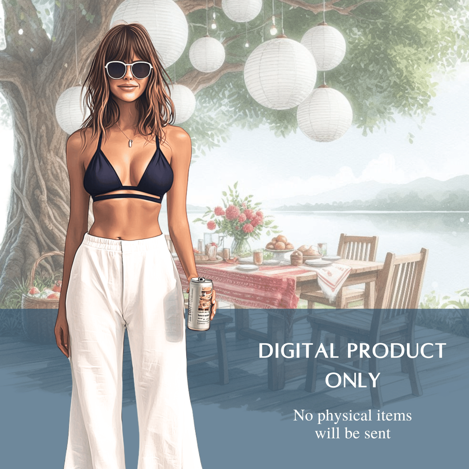 Celebrate the heat with this laid-back, lakeside-inspired Summer BBQ clipart set filled with food, fashion, drinks, and chill backyard vibes.