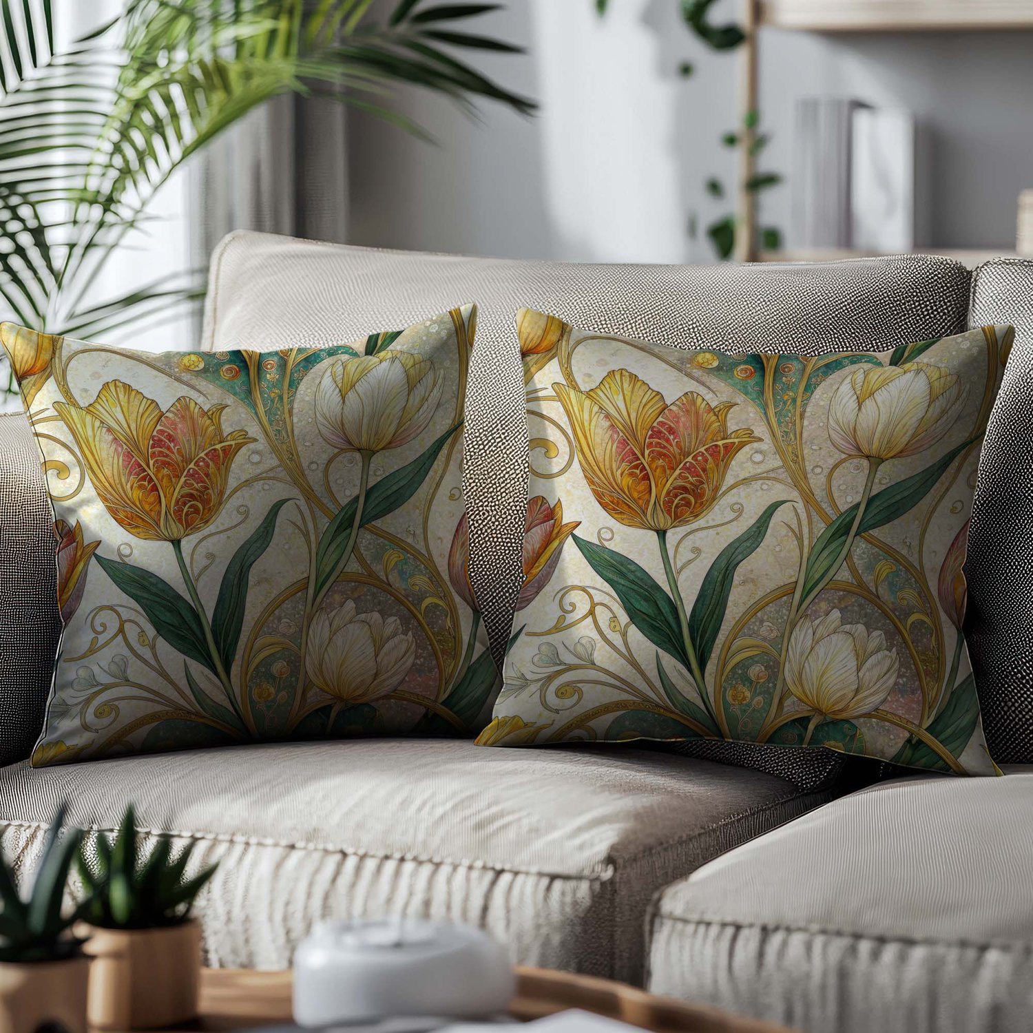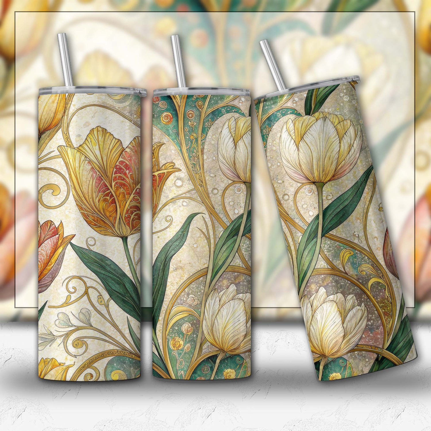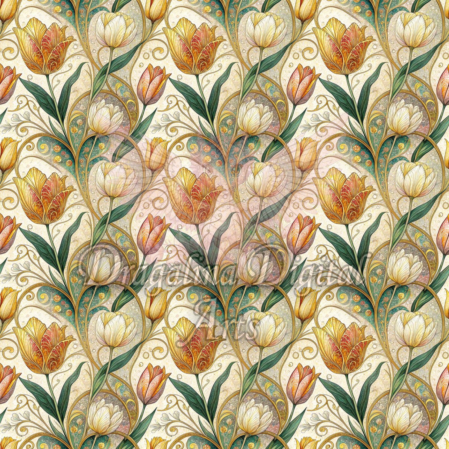 Golden Tulip Scroll Seamless Pattern