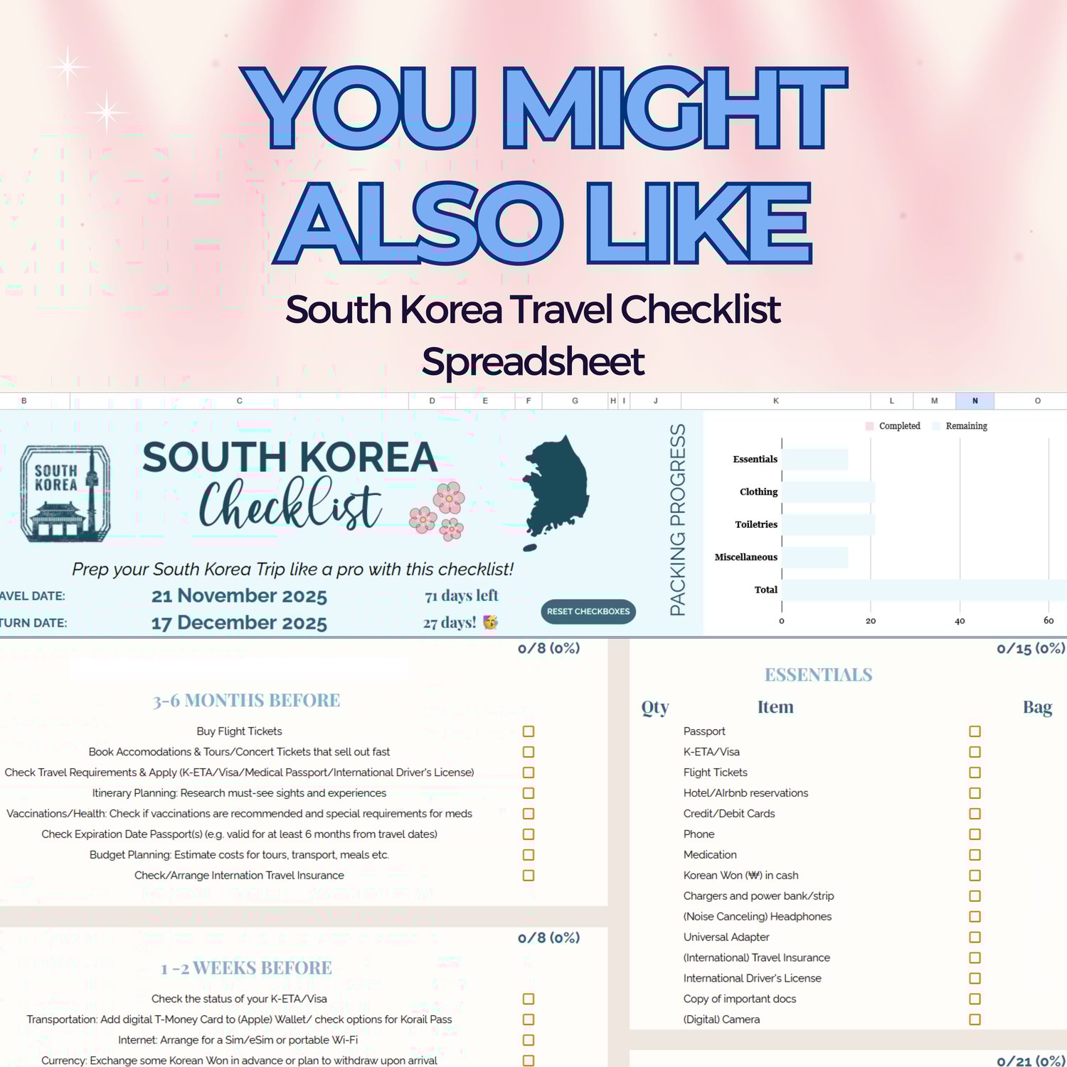 🧳 Korea Packing List – categorized by Clothing, Toiletries, Electronics, Documents & Extras