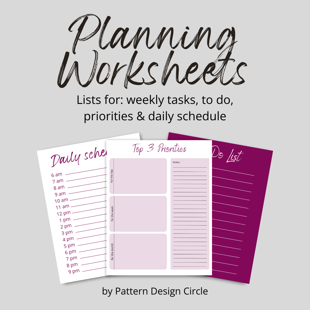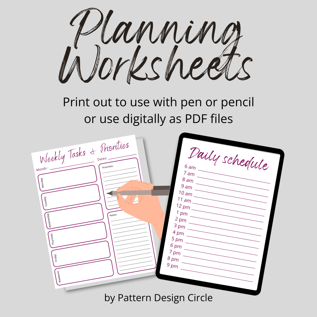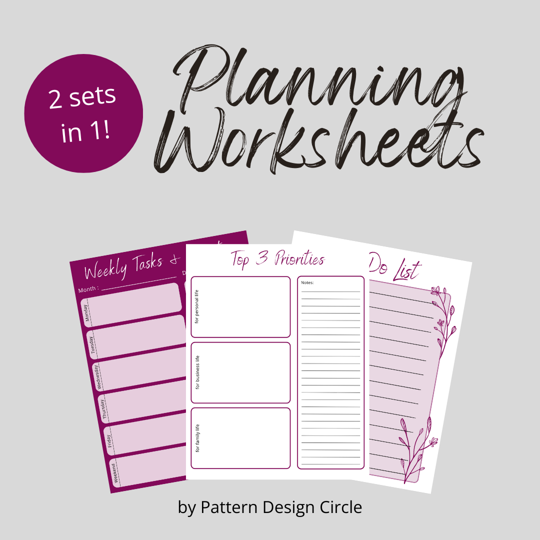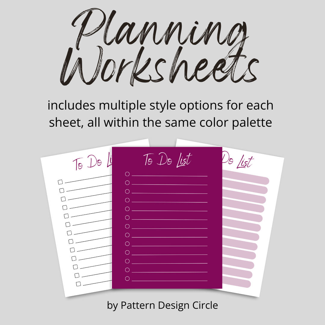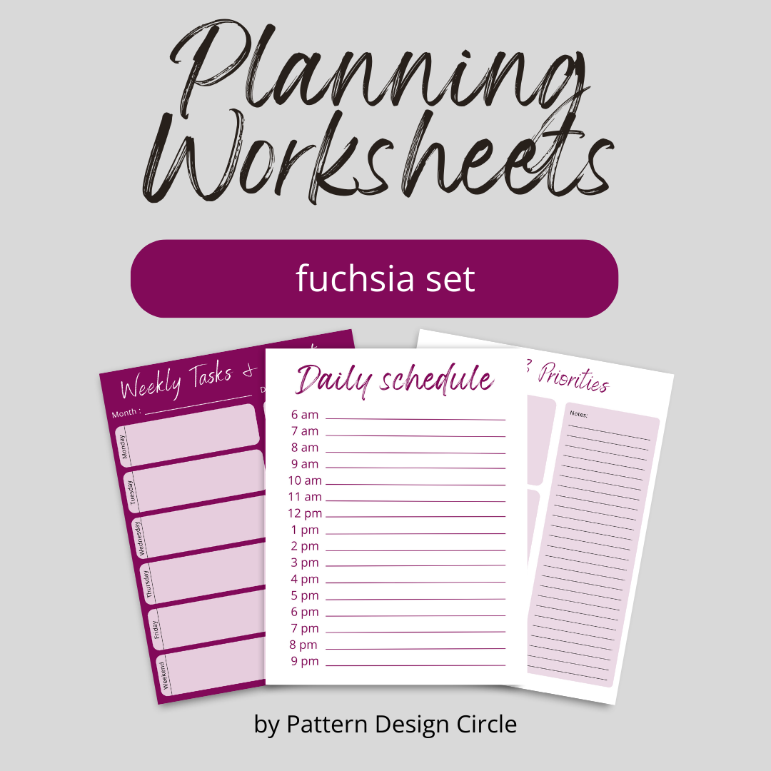 Purchase of this set includes 26 total planning worksheets. This listing is a bundle set of the Fuchsia Set & Fuchsia Flowers Set.