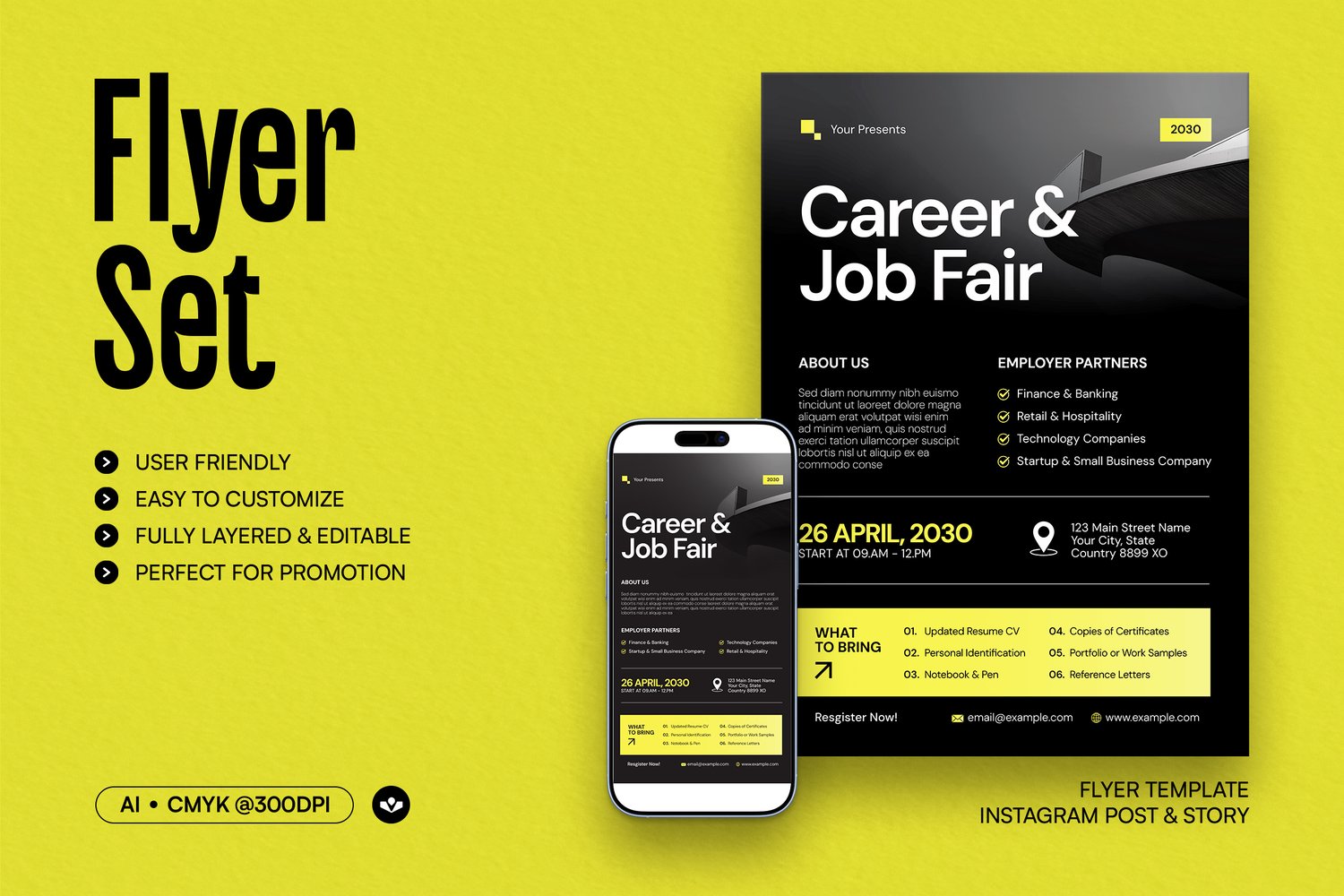 - 03 Artboard Size: FLYER - 8.5x11 inch, INSTAGRAM POST - 1080x1350 px & INSTAGRAM STORY 1080×1920 px;
