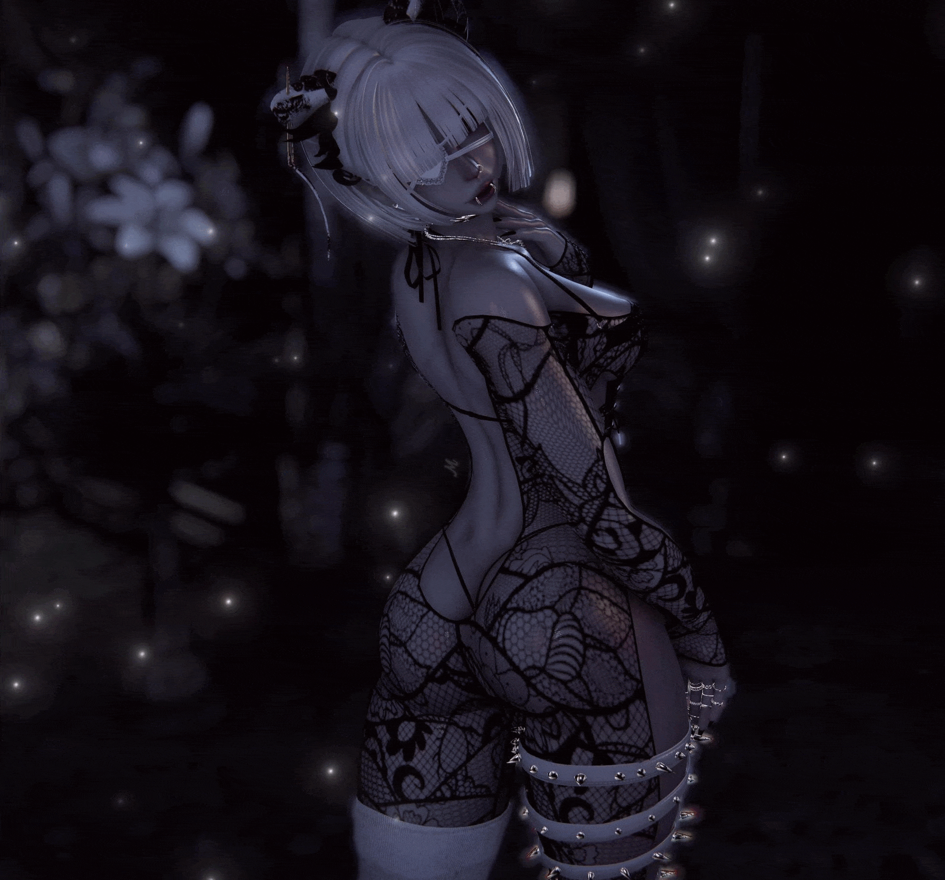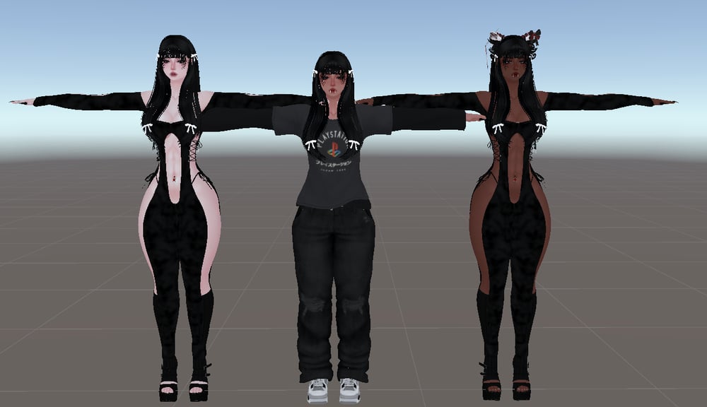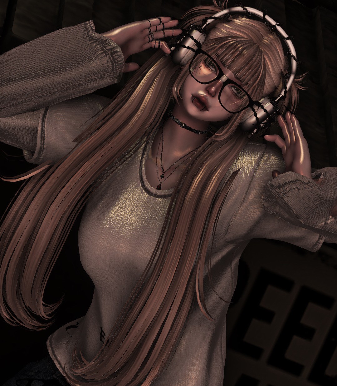 19 Accessories - Long nails, Face piercings, Rings, Glasses, Fluffy gloves, Leg warmers, Kitty hat, Kittyhood, Belly ring, Necklaces, Eyepatch, Headphones, Scythe, Bows, Skelly set