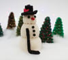 a hockey stick? This snowman is knitted all in one piece from the bottom up on double- pointed needles. Buttons and hockey stick (or broom) are attached with sewing thread. Substitute a broom for the hockey stick for a more traditional look.