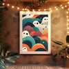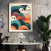 Printable wall art fantasy ghost poster halloween night party. Decoration wallart funny character halloween