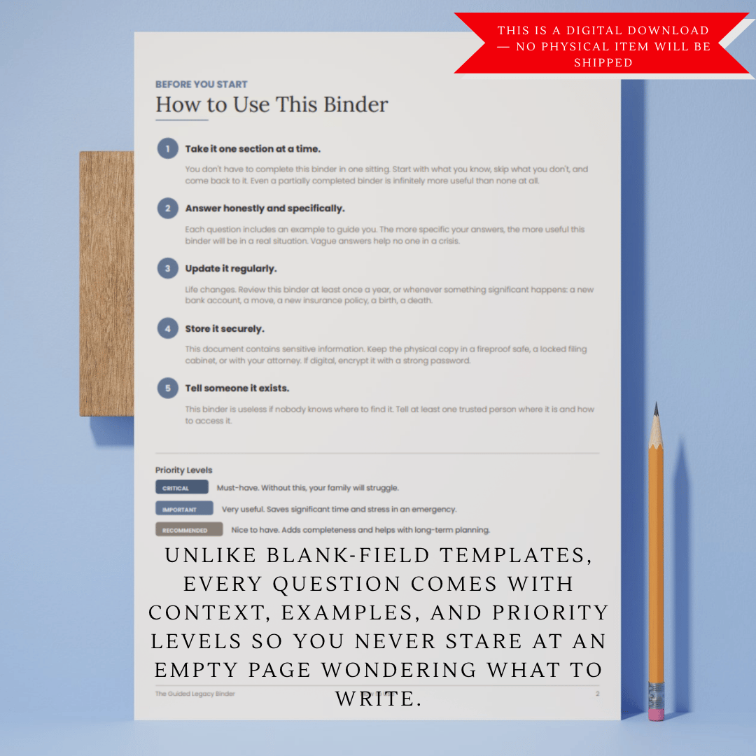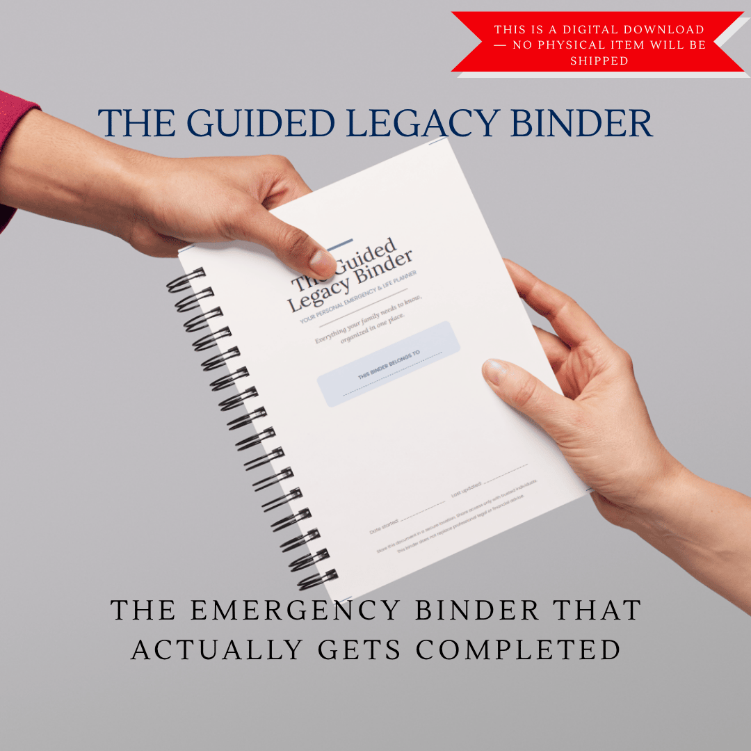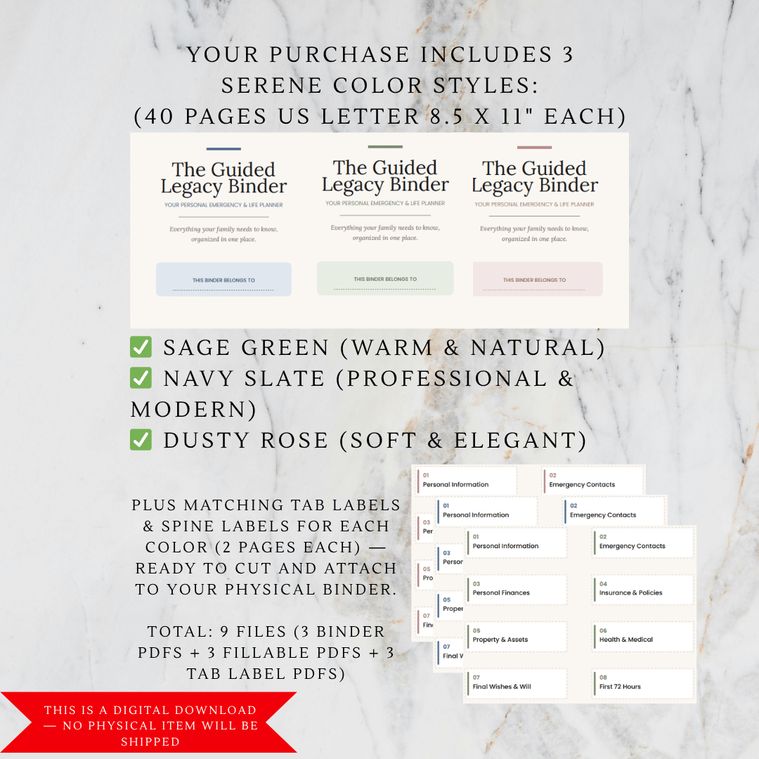 The Guided Legacy Binder — Emergency & Legacy Planner Bundle (3 Colors + Tab Labels)