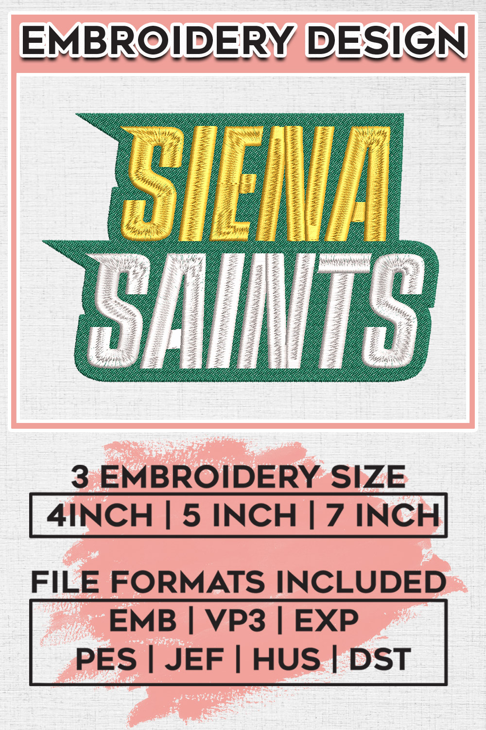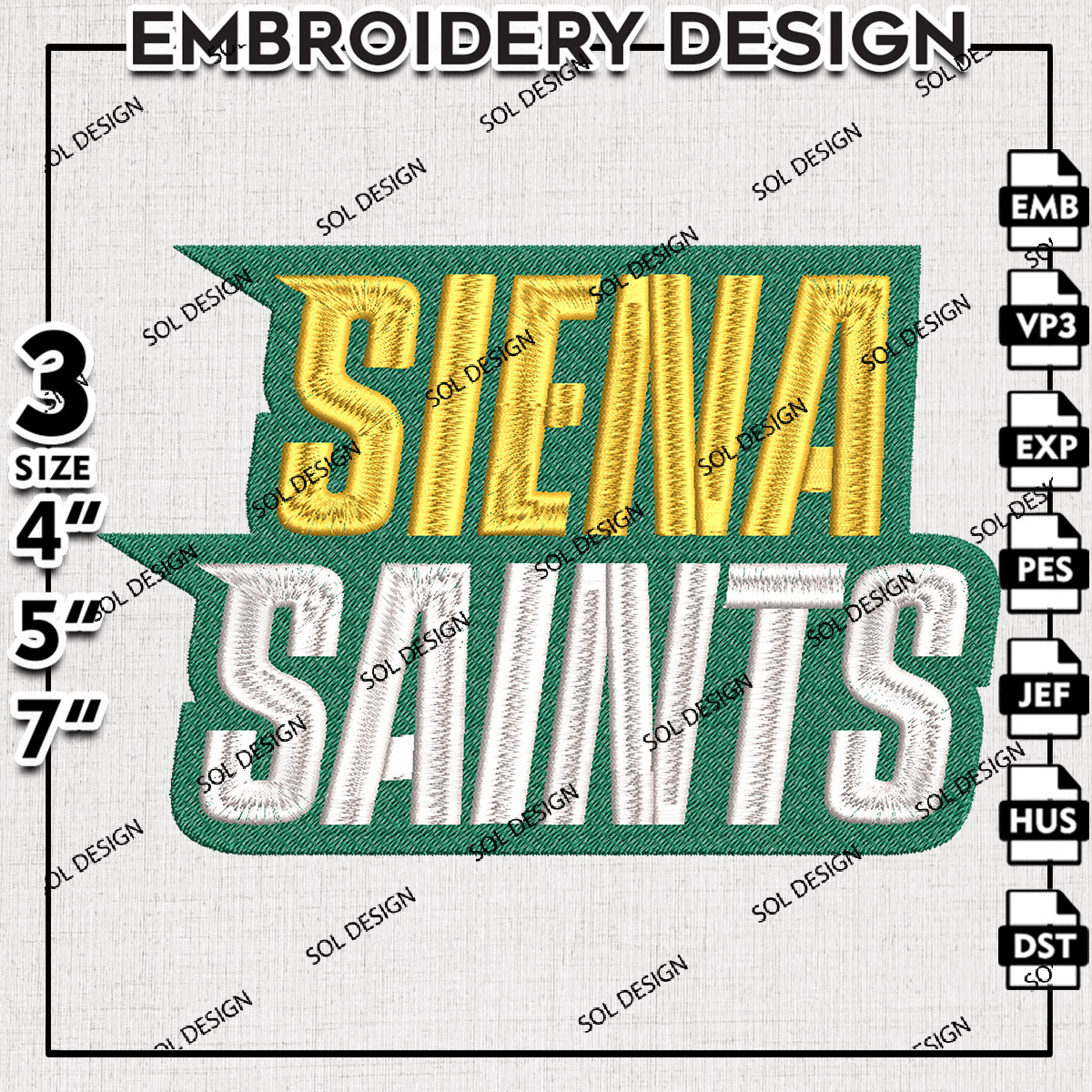 Ncaa Siena Wordmark Embroidery Design, NCAA Siena Saints Machine Embroidery Files, NCAA Logo embroidery designs, Ncaa Siena Logo, Digital Download