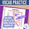 Spanish Prepositions Vocabulary Word Search - búsqueda de palabras activity