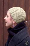 Cabled arches work their way up from the brim towards the crown, creating a striking Hat. As with other designs in this book, the crown shaping is worked into the stitch pattern, creating a unique and decorative crown.