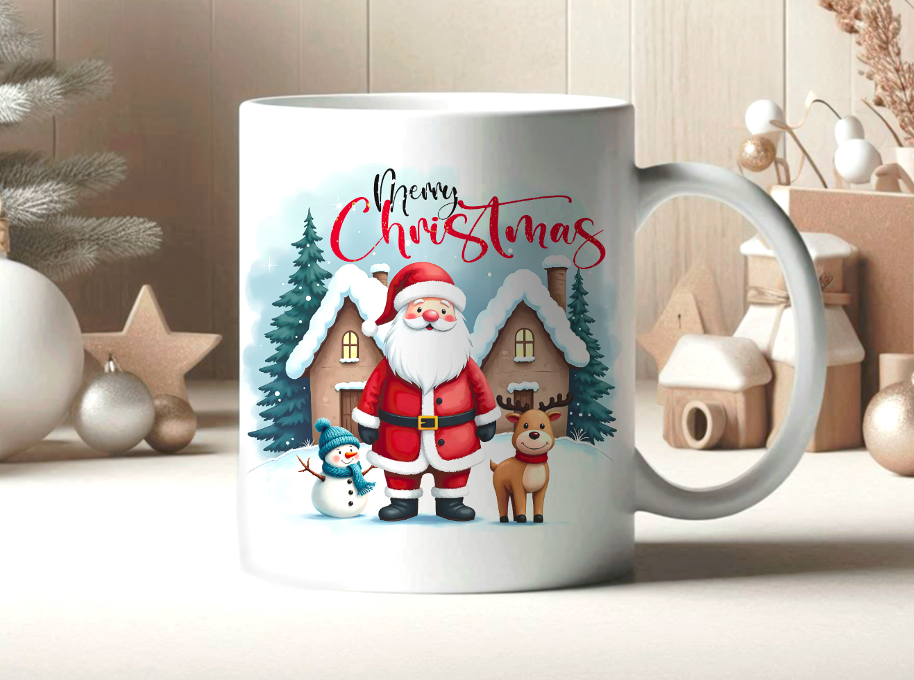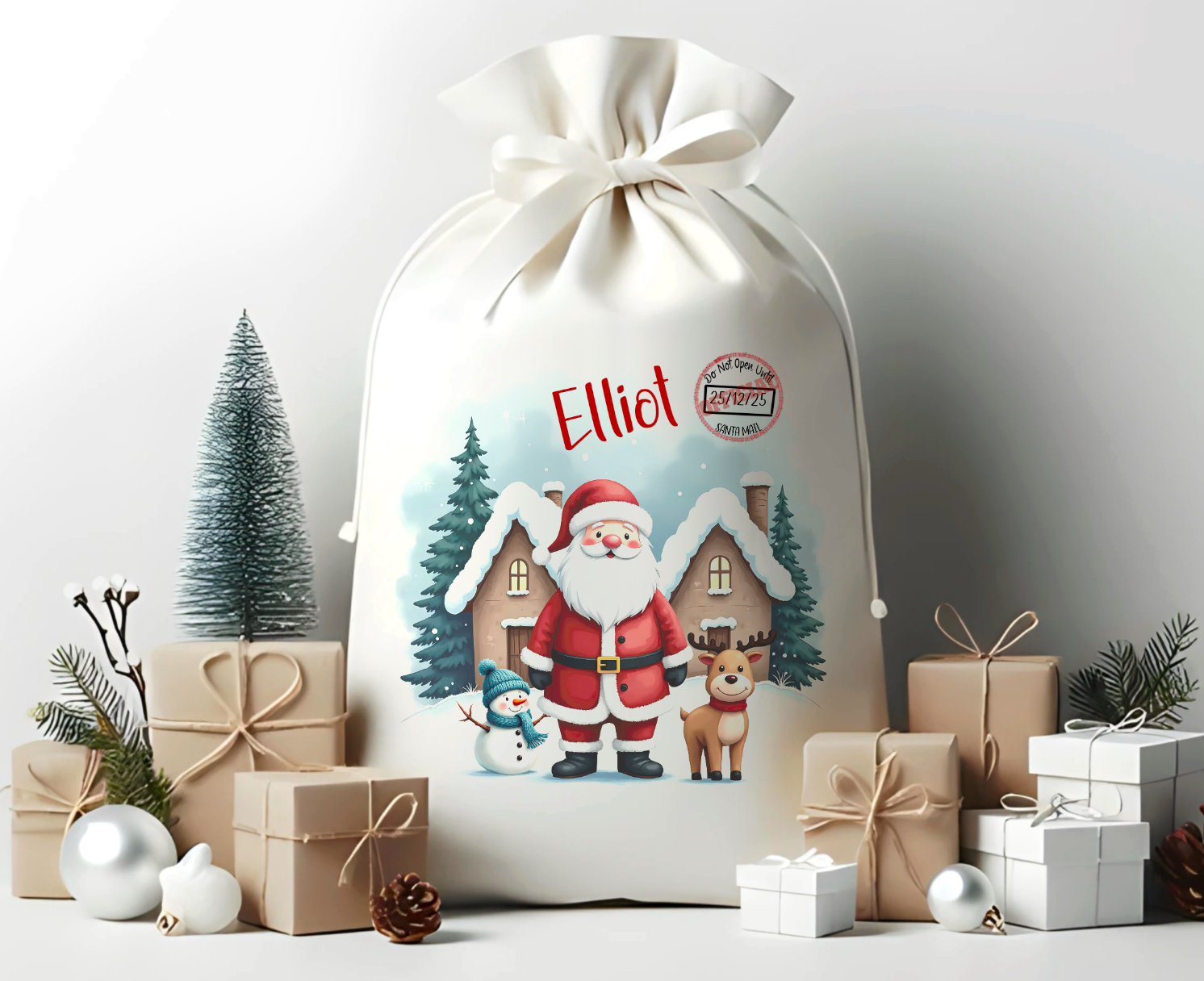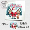 Watercolour santa, snowman, reindeer scene. With and without text.
