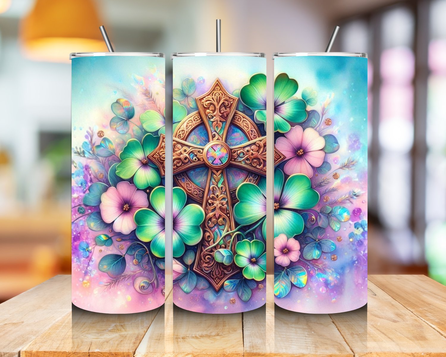 This meaningful design features a rustic wooden cross at the center, accented with a vibrant heart detail and surrounded by warm, vintage textures. The piece blends faith and love into a bold, heartfelt visual that represents devotion, grace, and spiritual strength. The distressed wood look gives it a farmhouse aesthetic while the heart element.
