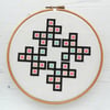 This design is made from a motif that can be seen at the corners of a portrait of St Matthew in the Book of Kells. The motif has been arranged to create this striking geometric design.