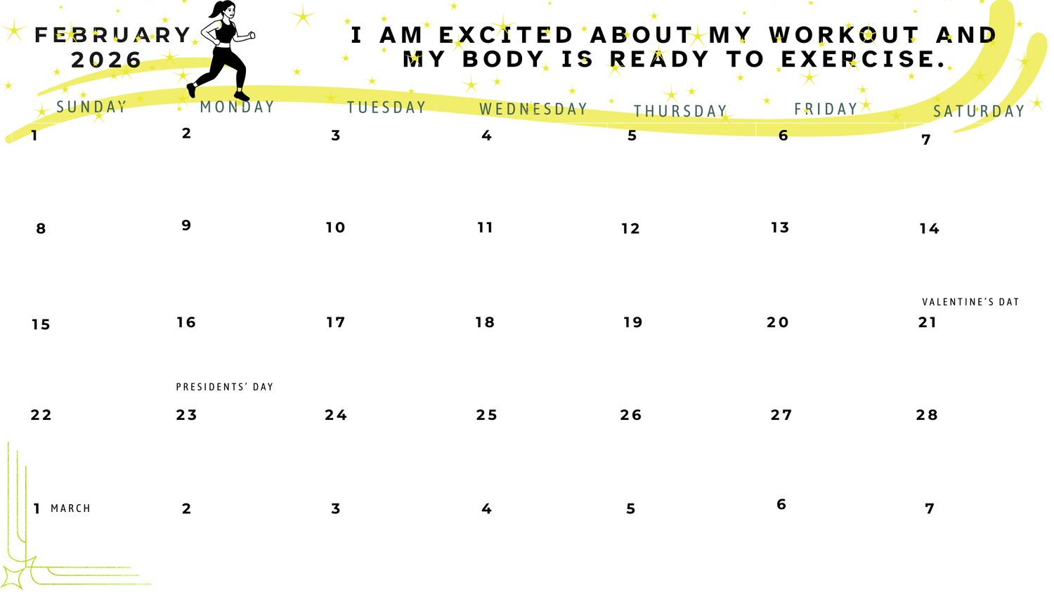 2026 Calendar Affirmations for Regular Exercise and Encouragement