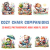 Transform your creative projects with our "Cozy Chair Companions Clipart" collection! This digital pack includes 20 unique and whimsical images, each in PNG transparent format at a high resolution of 300 dpi and 4096 x 4096 px.