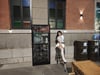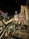 Naomi Sak an Amputee girl in a white dress and white stockings taking the subway.