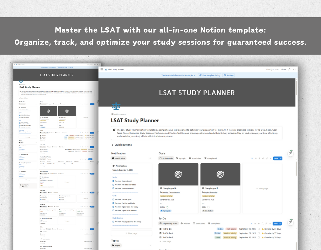 Welcome to your ultimate LSAT Study Planner in Notion — a complete system designed to streamline your prep, keep you focused, and help you achieve your target score.