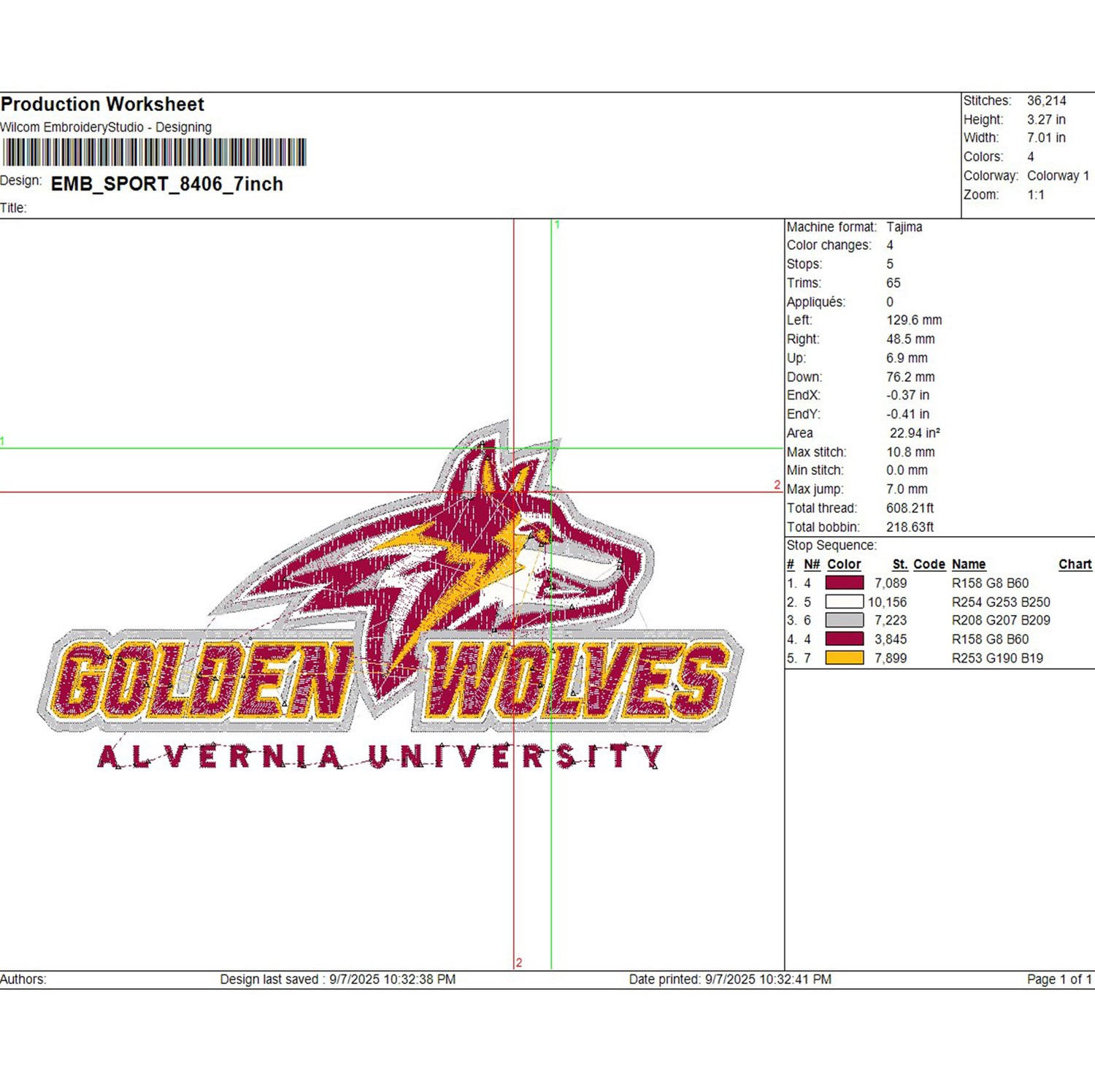 Alvernia Golden Wolves NCAA College Football Team Logo Embroidery Designs, Ncaa Embroidery Files, NCAA Alvernia Golden Wolves Team Logo Embroidery, Game Day Machine Embroidery Design, Digital Download