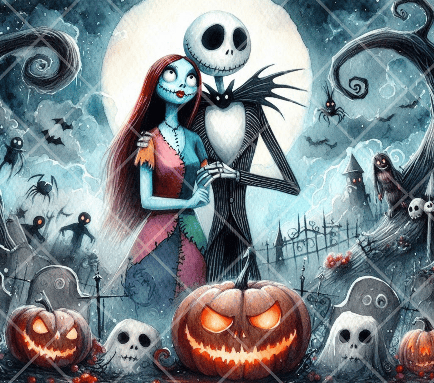 Celebrate love and Halloween with our "Jack and Sally Skellington 20 oz Tumbler Wrap Design." This design, available in both PNG and JPG formats, features the iconic Halloween couple, Jack and Sally, in a beautifully spooky scene perfect for adding a touch of gothic romance to your drinkware. Ideal for straight 20 oz tumblers, this wrap design is perfect for creating custom gifts, personalizing your own tumbler, or adding a unique product to your print-on-demand store. Easy to use and high-quality, this design is perfect for all Halloween and "Nightmare Before Christmas" fans. Note: This file is for use on products and cannot be resold as a digital file.
