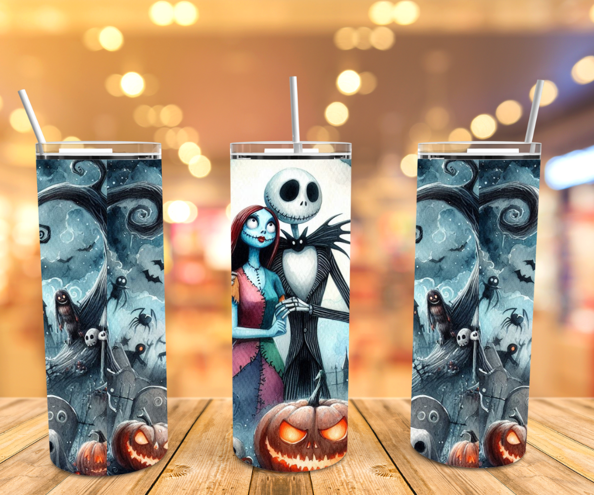Jack and Sally Skellington 20 oz Tumbler Wrap Design: Halloween Couple PNG & JPG