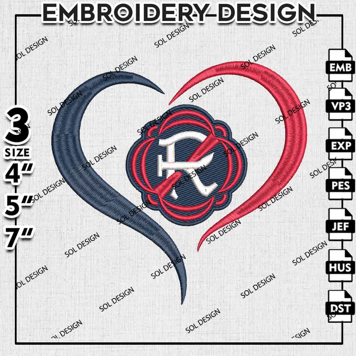 MLS New England Revolution Heart Logo Embroidery Designs, New England Revolution Embroidery Files, MLS New England Revolution Logo Embroidery, Major League Soccer Machine Embroidery Design, Digital Download