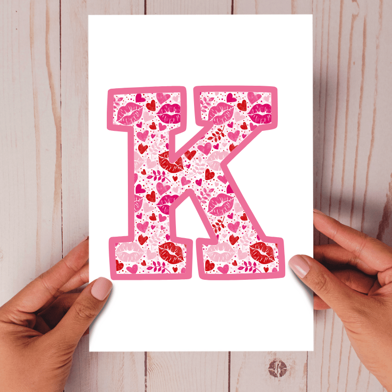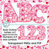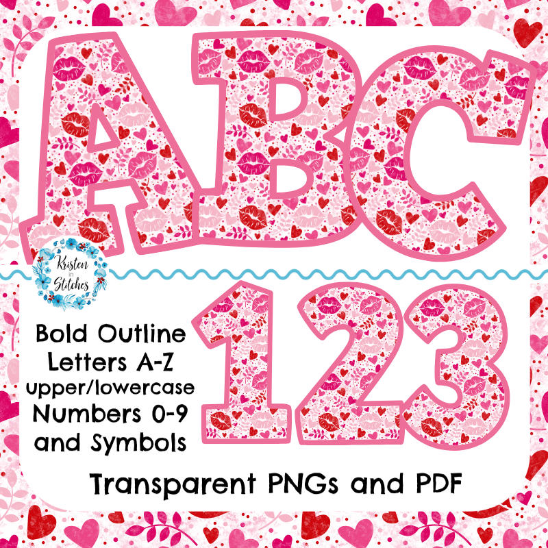 Valentine Hearts and Kisses Alphabet Letters A-Z Numbers 0-9 PDF Transparent PNGs, Pink and Red Lips