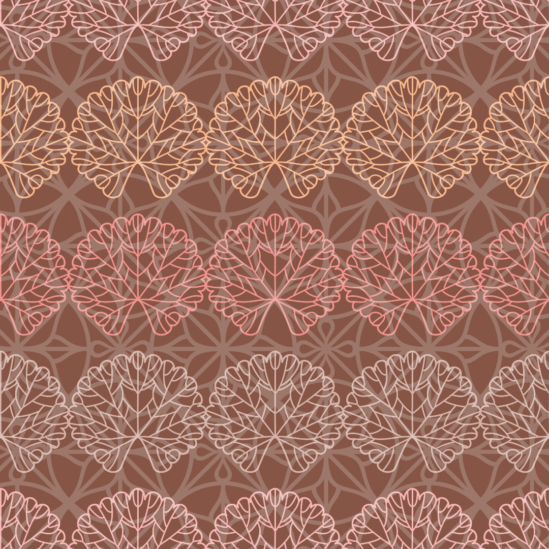 Outlined zonal geranium surface pattern design. Fall scalloped leaves vector illustration background.