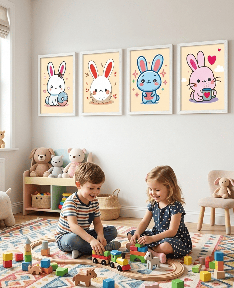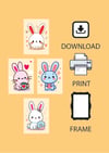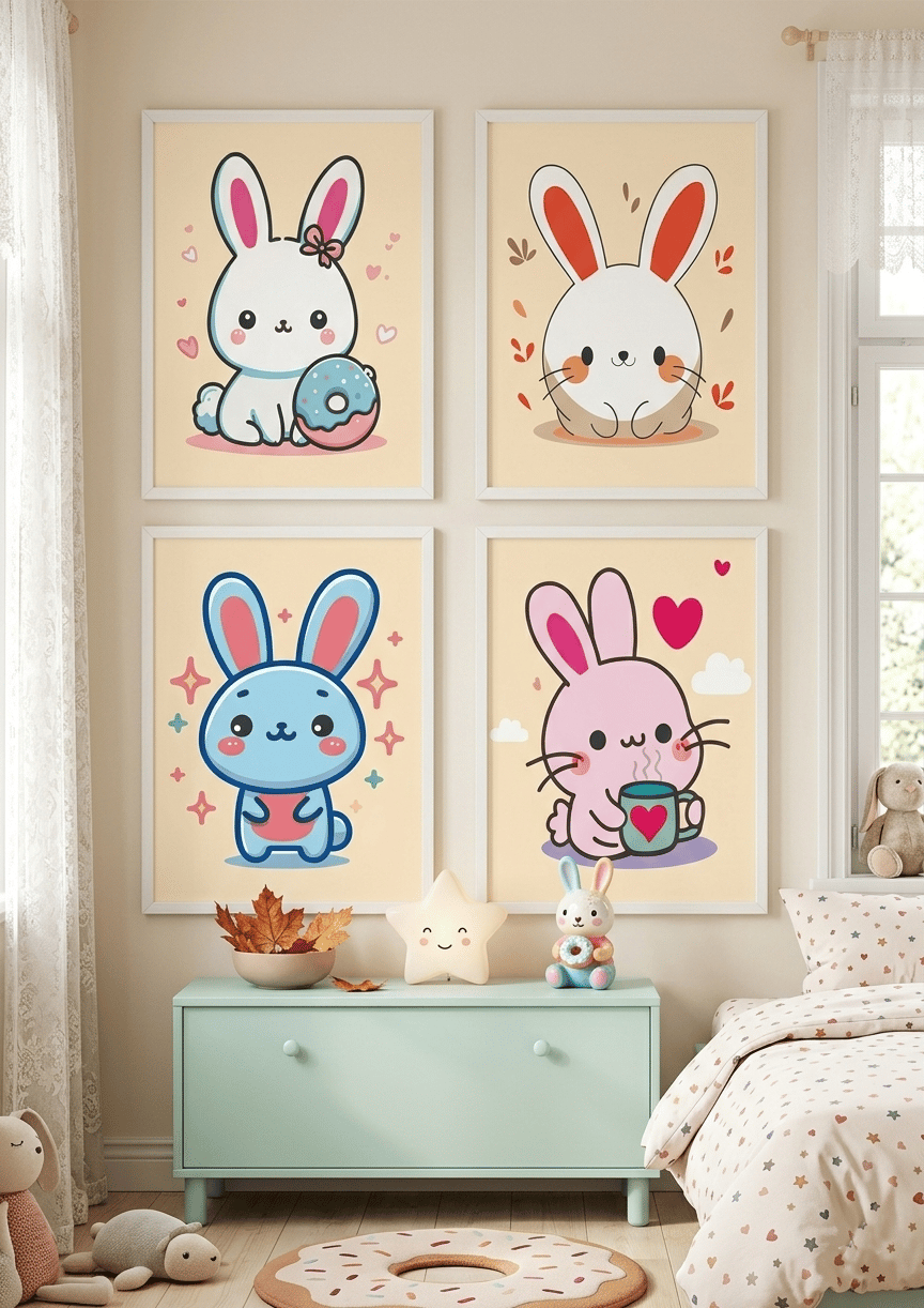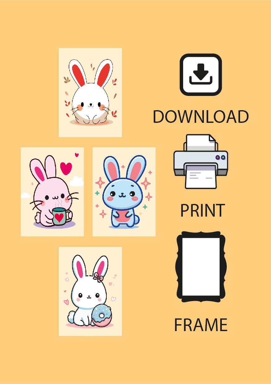 Baby and Child's Room Decor - Set of 4 Kawaii Bunny Baby Animals - High Resolution