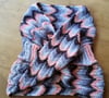 From a Traditional Story: ”In the beginning of the beginning, Giraffe wasn’t as tall as the trees. She was more like a deer, lean and quick and no taller than a bush.’’ When drought came, drying up all but the highest leaves in the trees, Giraffe and Rhino asked Man to help them reach the trees. He gave them a magic herb, but Rhino forgot to eat his, and so Giraffe ate both portions, resulting in a double long neck. This tall cowl is worked flat and then seamed to form either a false Moebius or a traditional no-twist cowl.