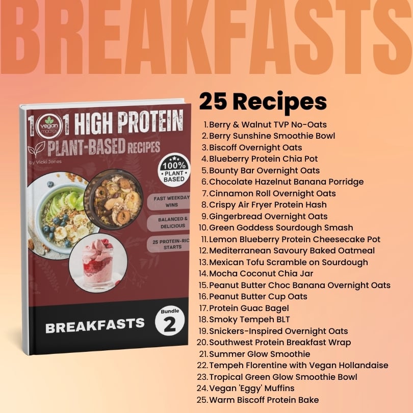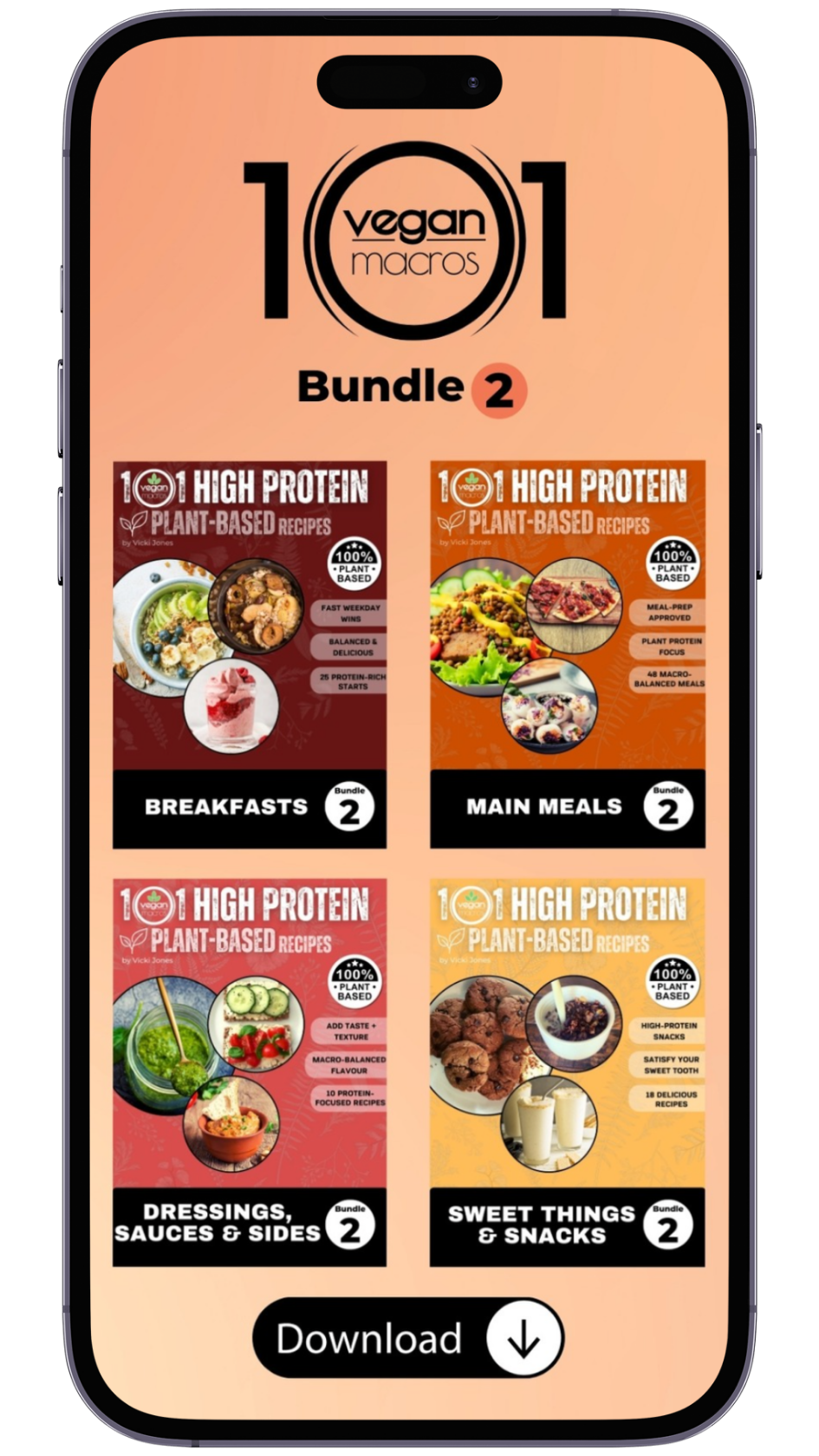 - Brand new set of 101 high-protein, macro-friendly vegan recipes