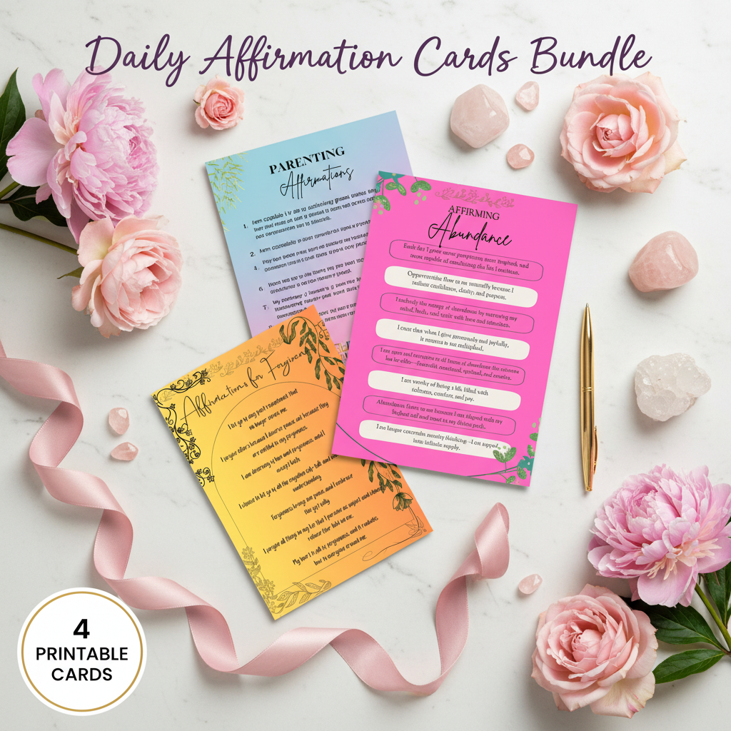 Daily Affirmation Cards Bundle - 4 Printable Affirmation Posters for Parenting, Abundance, Motivation & Forgiveness PDF 2026