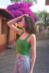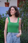 This simple, square neck tank is knit from the bottom up in garter stitch with your choice of working in the round with subtle side seam detailing or flat and seaming it as the final step. Easily customizable by adjusting the length of the body or straps, it’s time to make yourself a gushy summer tank top!