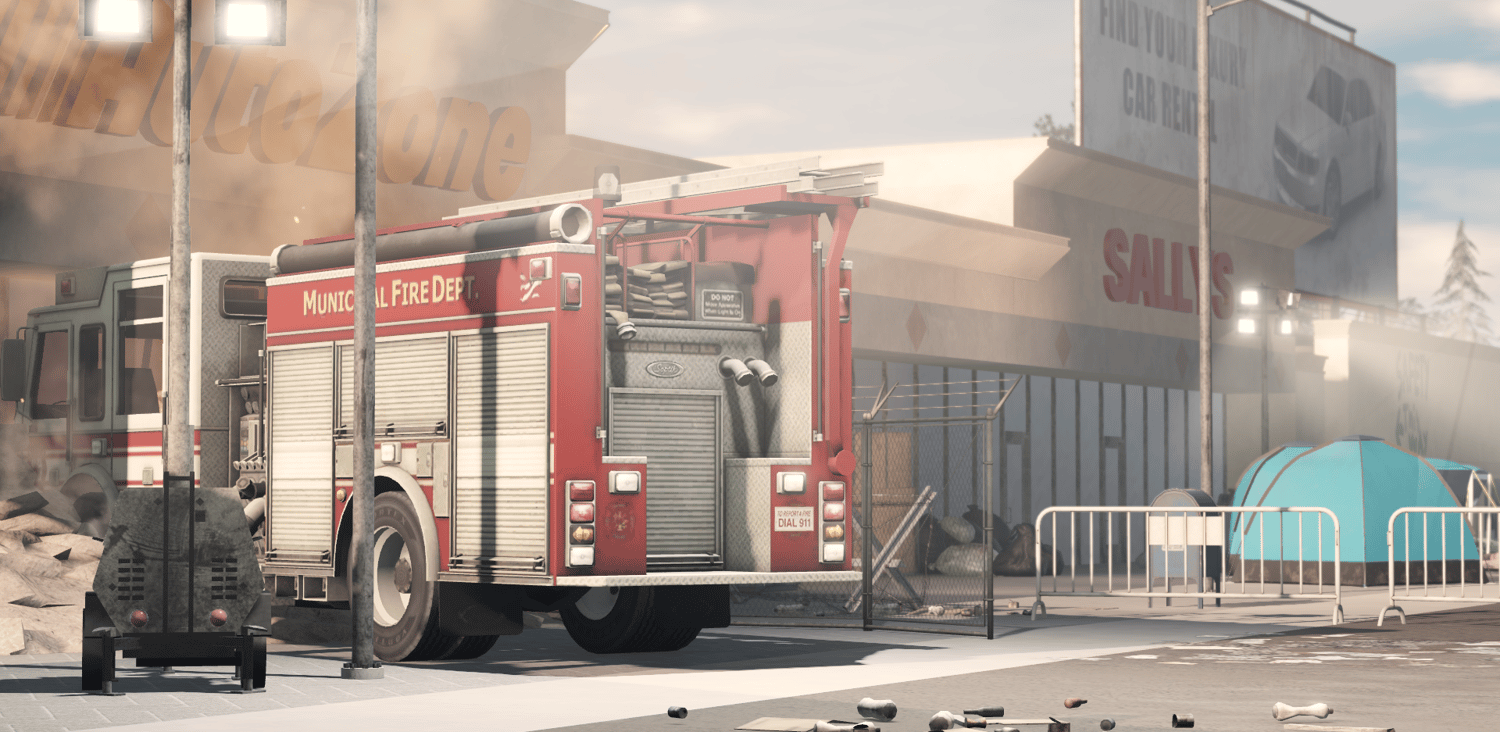 - Environmental storytelling via "Help!" and "Danger Here" graffiti on vehicles and walls