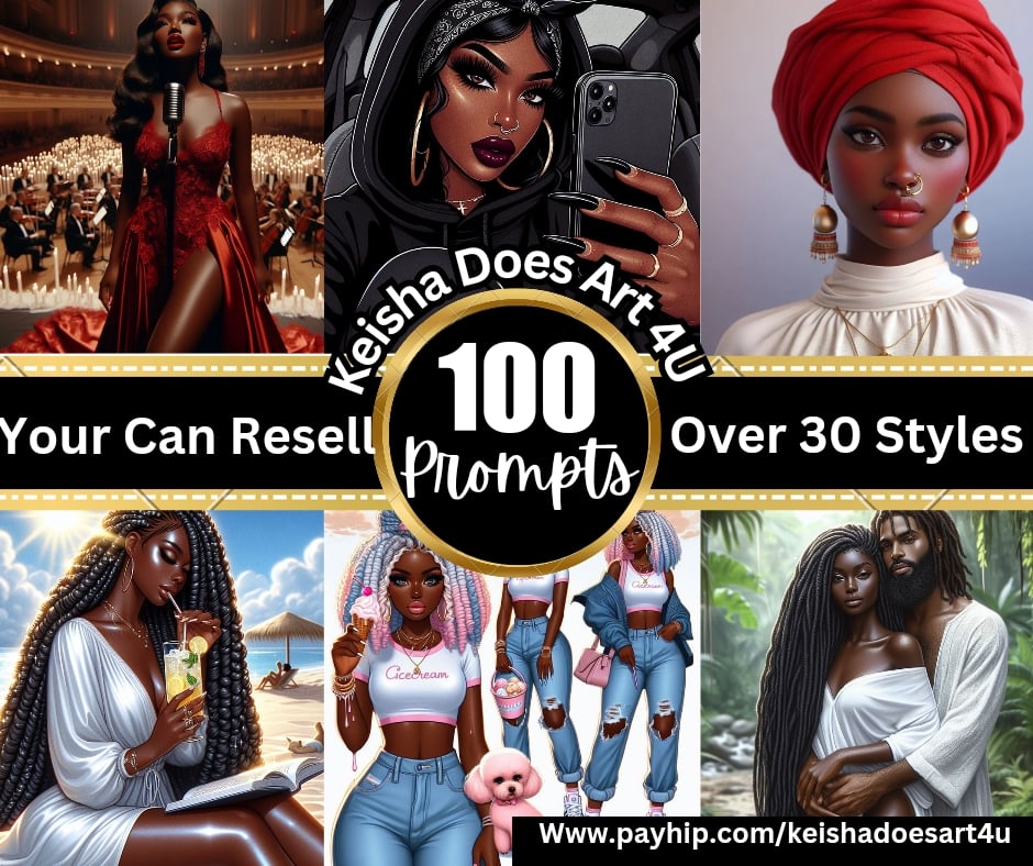 Elevate your AI game with this prompt guide that will help you navigate the AI digital art field. Not only will you be given 100 prompts to get you started in generating your own beautiful designs, but you can resell these prompts to earn your own profit and generate thousands of new prompts from one. Imagine being able to have your own personal collection of art for your business or personal products. Imagine having a vault full of unique designs for your journal covers or t-shirts. Imagine using your imagination to generate beautiful designs that will help your business GROW! This guide will help you do all of this, and more!