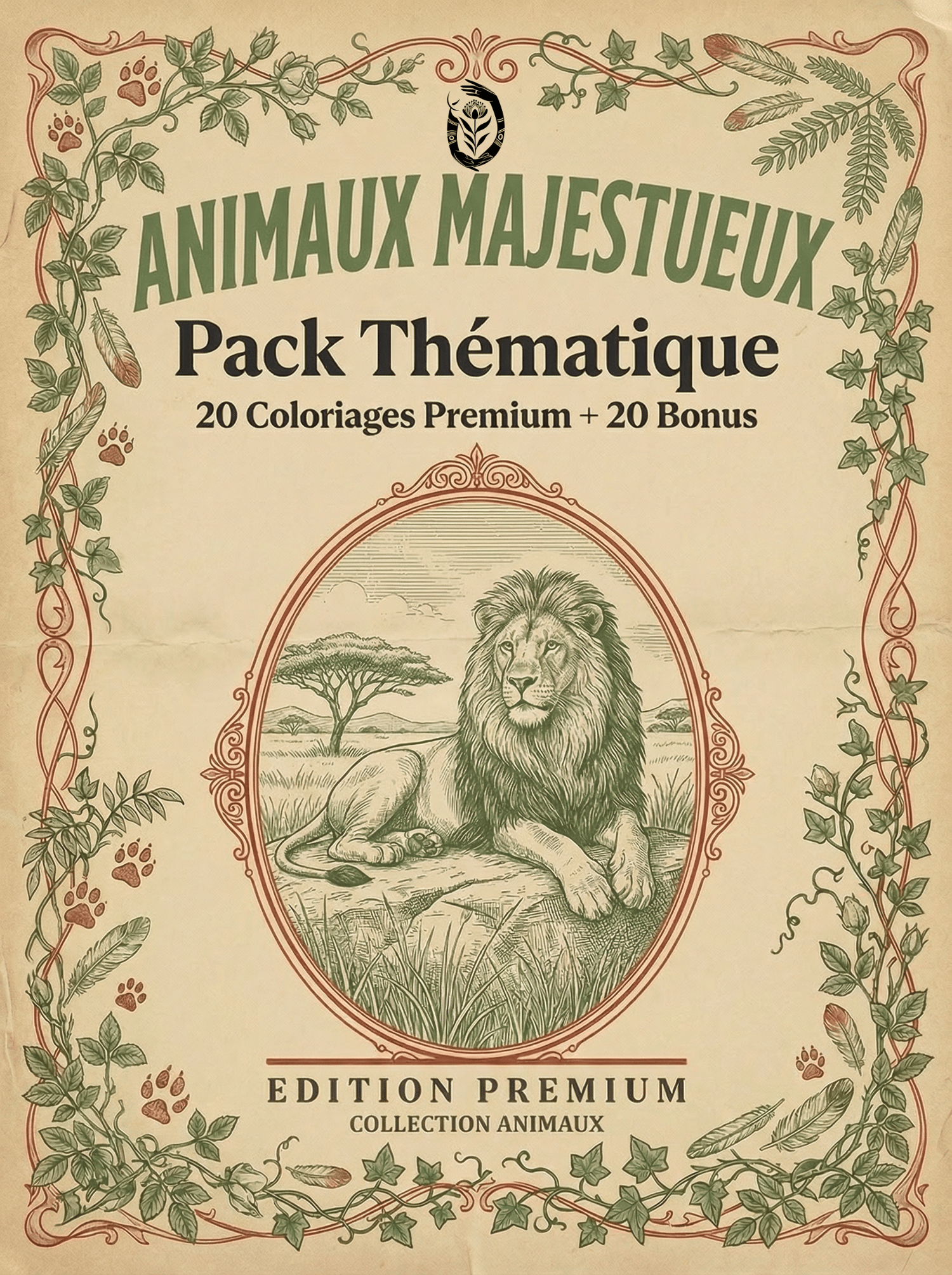 Animaux Majestueux - Pack Thématique | 40 Coloriages Nature + Guide Complet