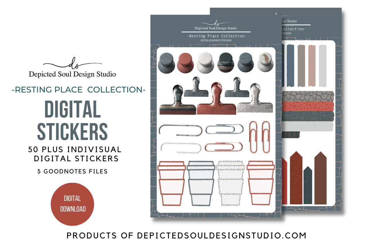Digital Stickers can be used with Digital Planners, used for Digital Scrapbooking projects and for creating inspiring Mood boards or Vision boards. Included are GoodNotes files with pre-cropped sticker sheets .