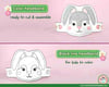 This cute, printable BUNNY HEADBAND is really easy for little ones to make. Just print, cut and assemble! Includes a color headband ready to cut and play, and a black line headband to color and decorate.