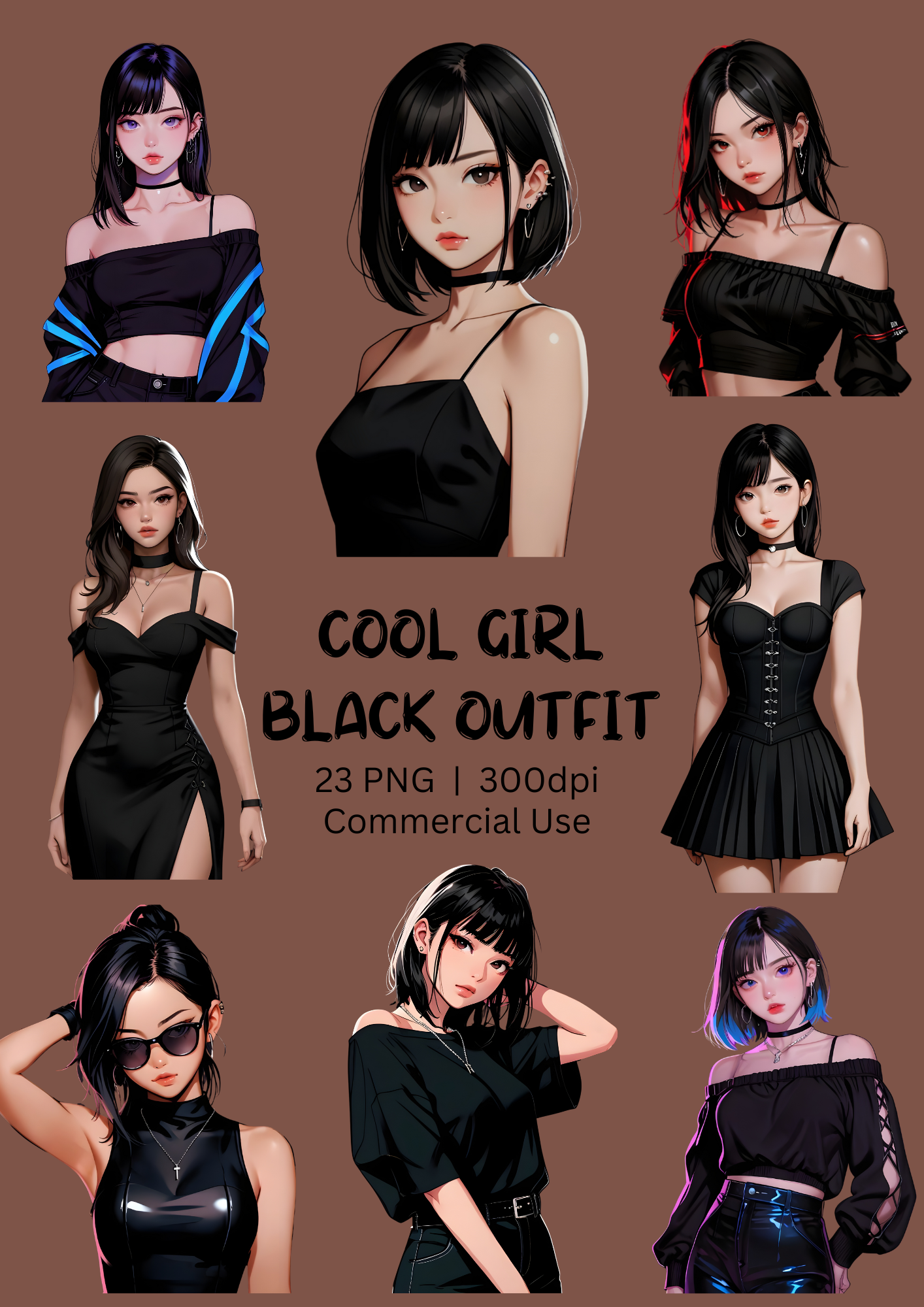 Cool Girl Black Outfit PNG Bundle, Black Outfit PNG, Girl PNG, Girl Clipart, Cool Girl Clipart