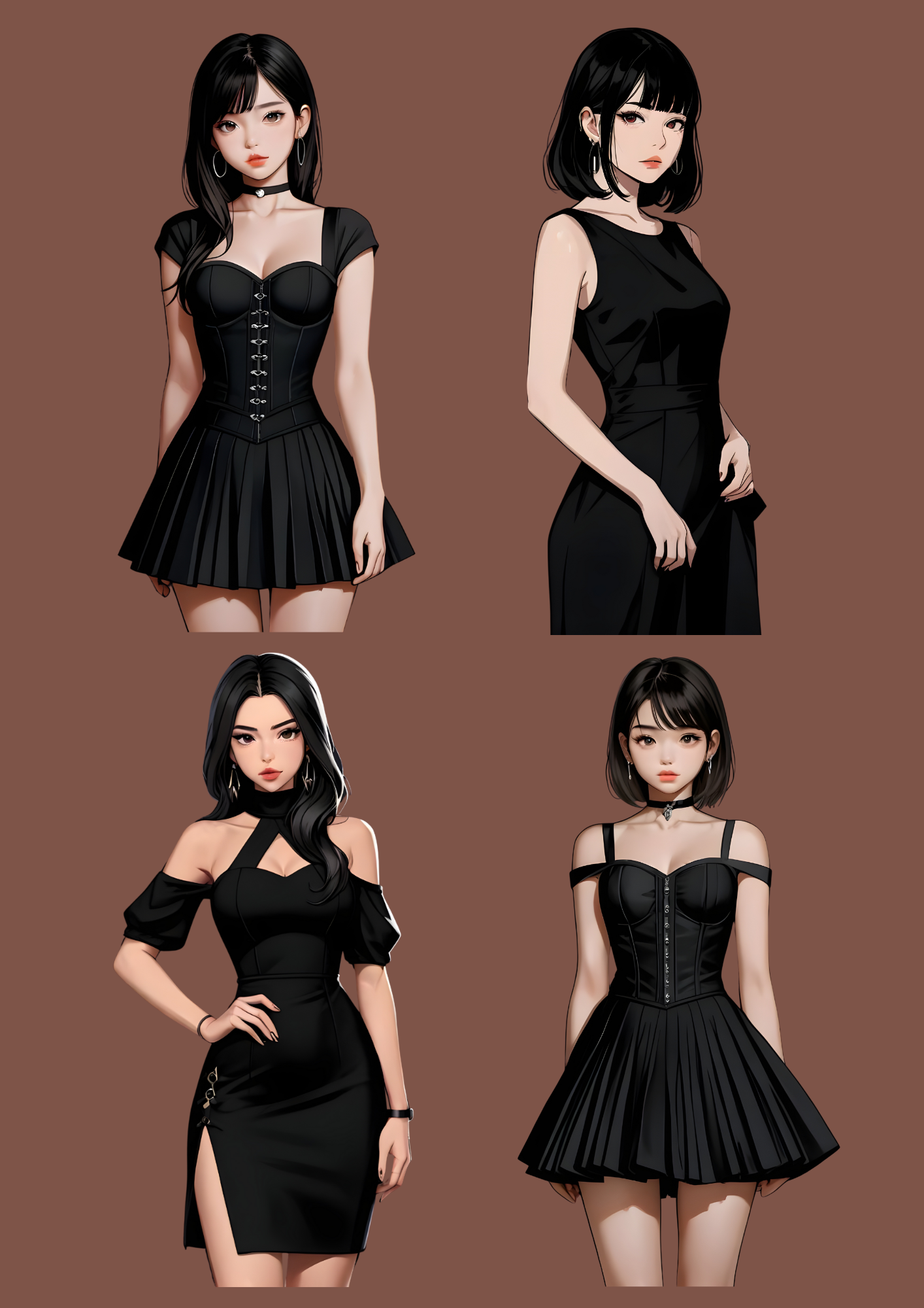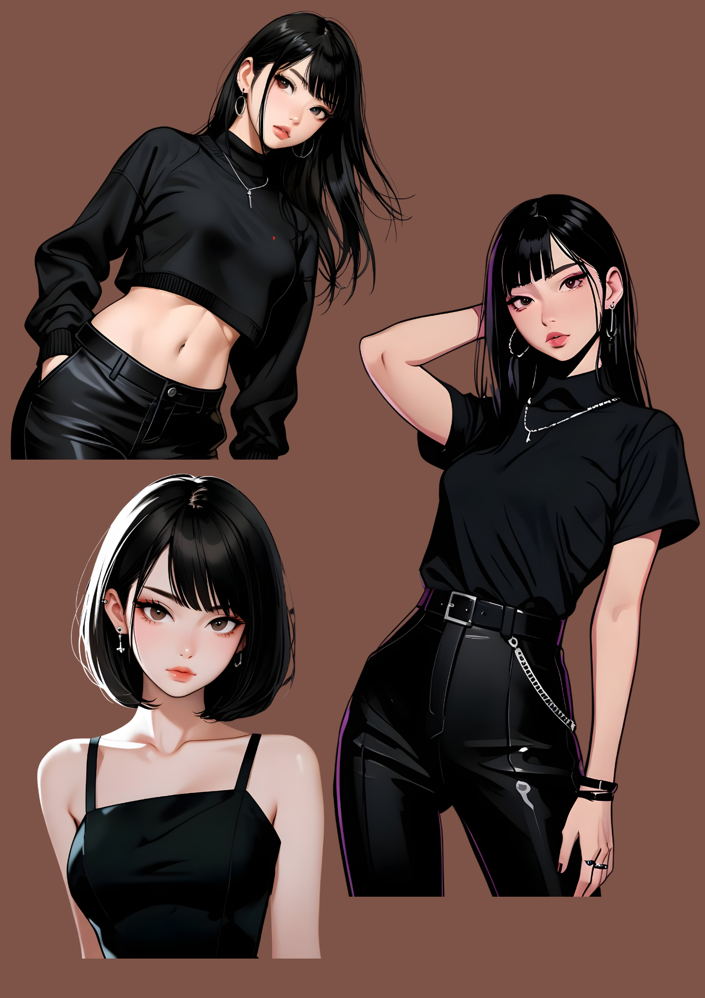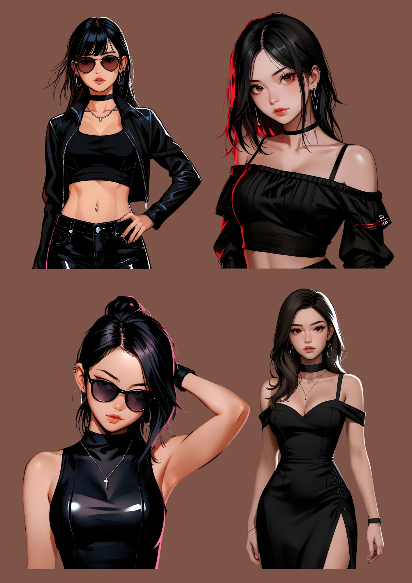 - 23 Unique PNG Files: A variety of chic black outfits that exude coolness and confidence.