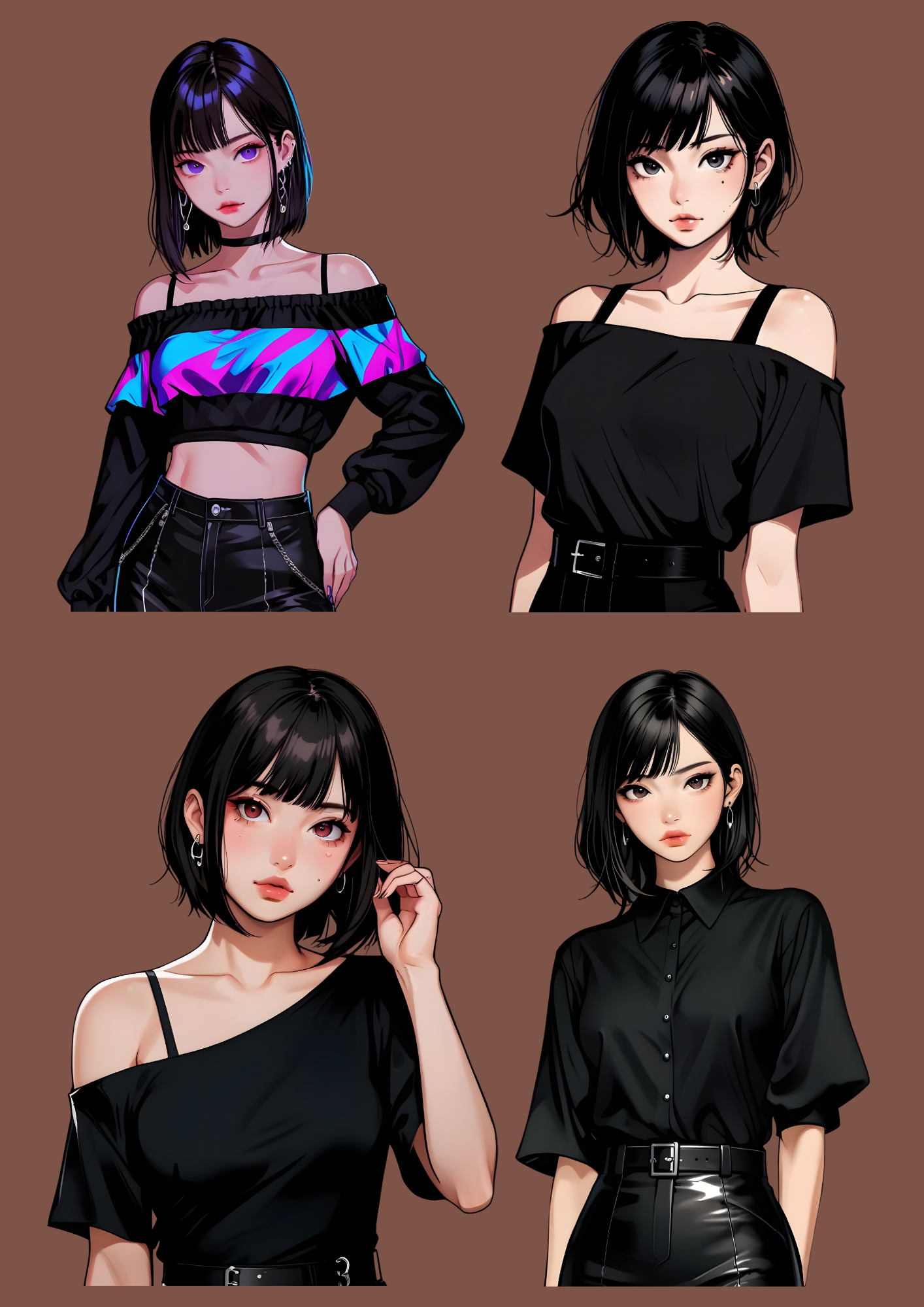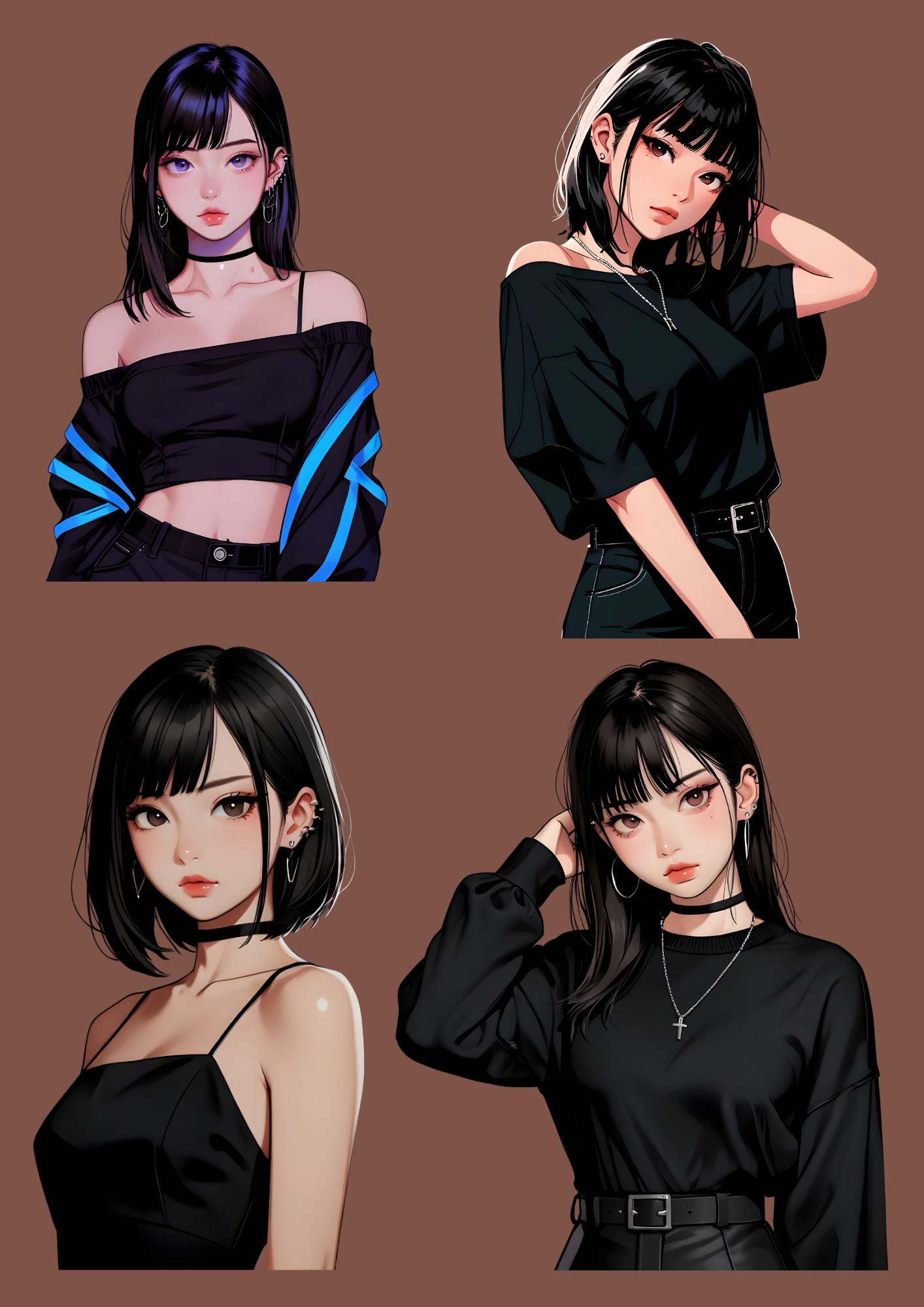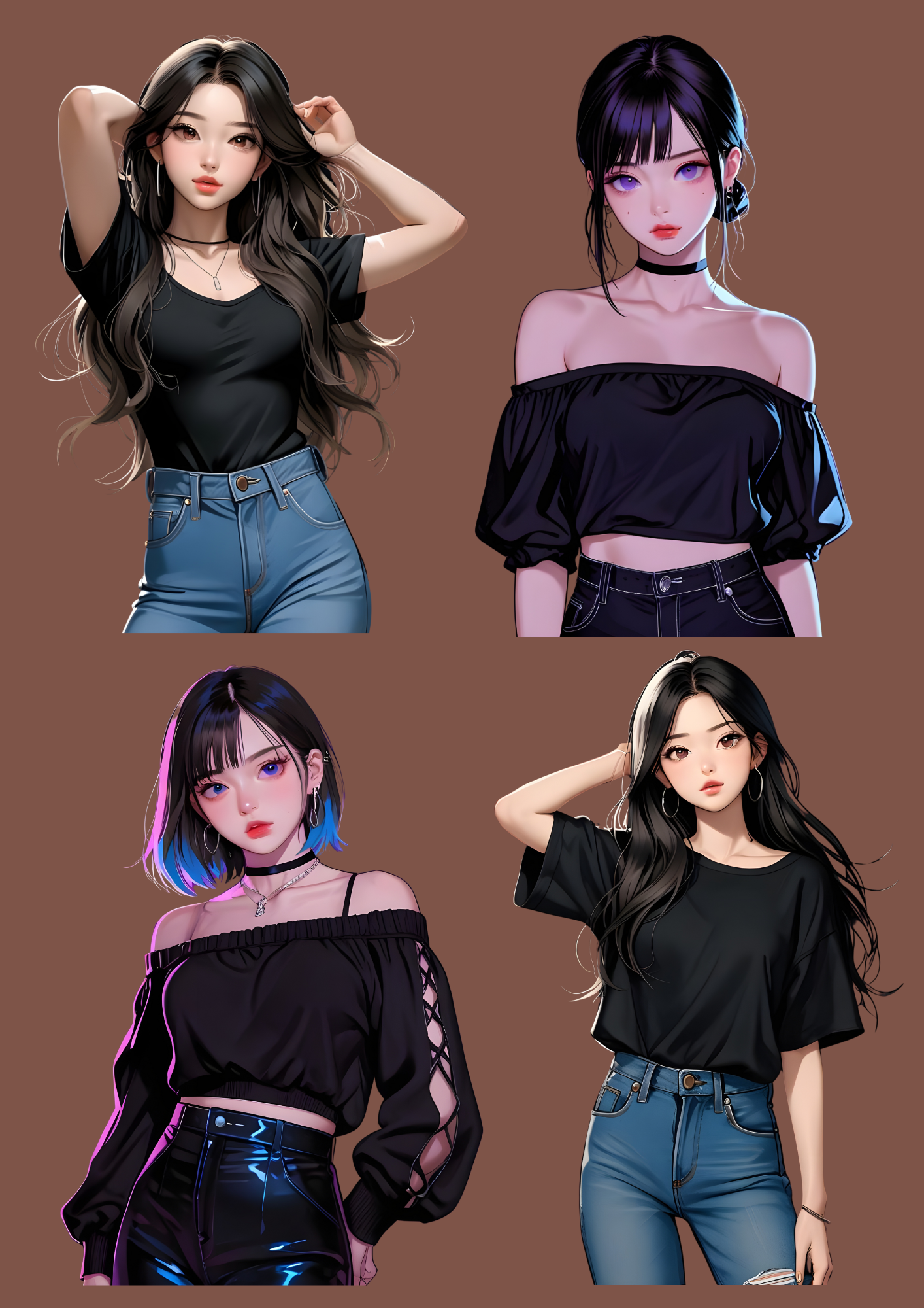- 23 Unique PNG Files: A variety of chic black outfits that exude coolness and confidence.
