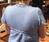 This top has a unique construction. The cable band, which sits below the bust, is worked first, completed and blocked. Then stitches are picked up around the top of the band and the Bust/Yoke areas are worked bottom up. Next, stitches are picked up around the bottom of the band and worked top-down.