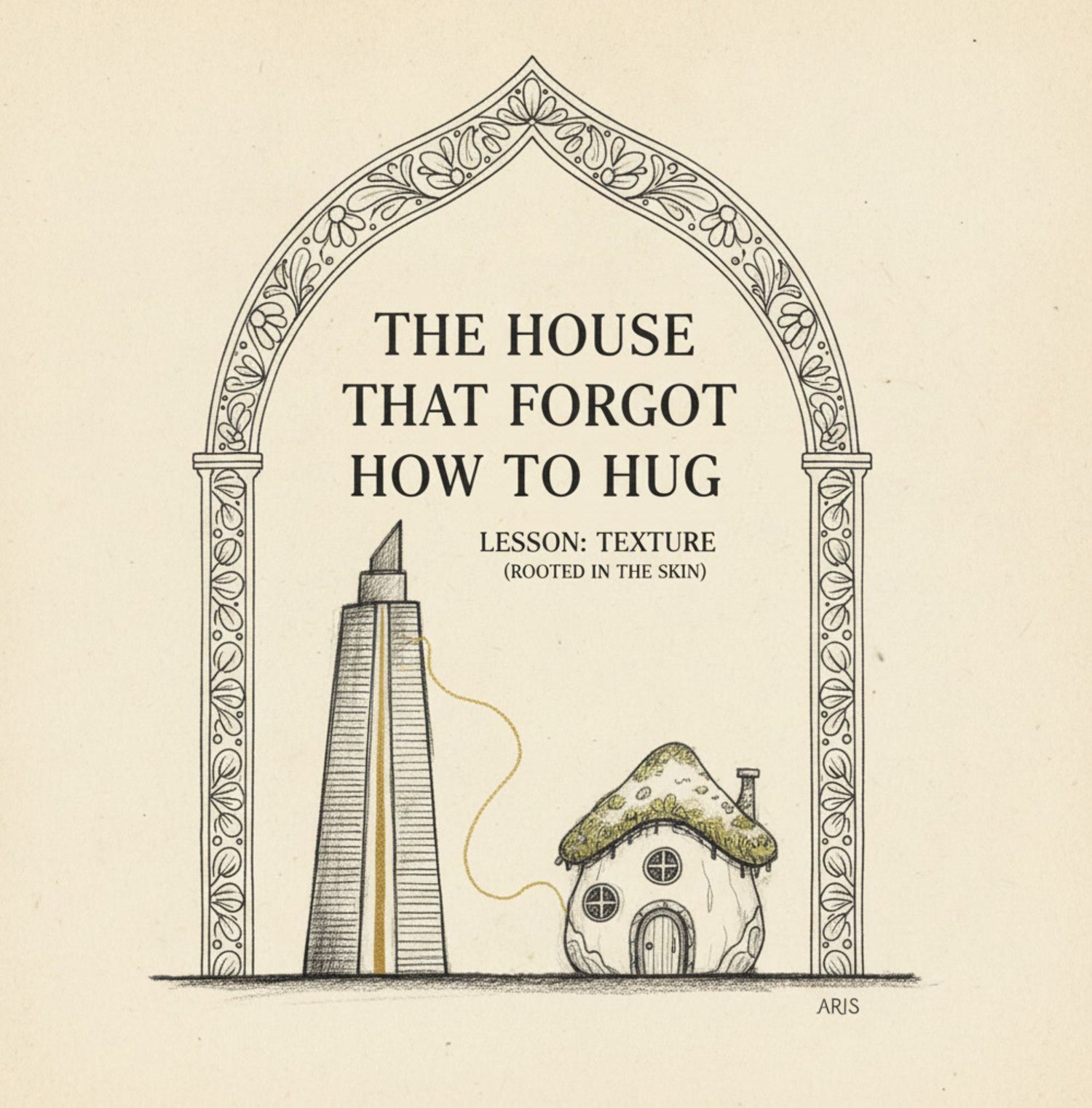 In the cold, sterile City of Glare, everything is smooth, glass, and silent. Aris, a young builder, feels invisible because his world never "touches" him back—until he discovers the Grandmother House. This lyrical fable explores the Hardware vs. Software of our lives, teaching children that their skin knows the difference between a building that is just a "unit" and a home that provides a hug.