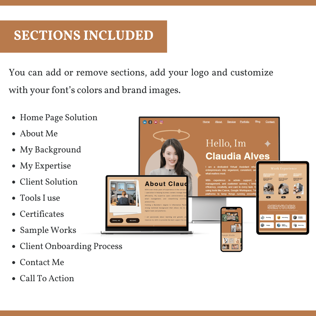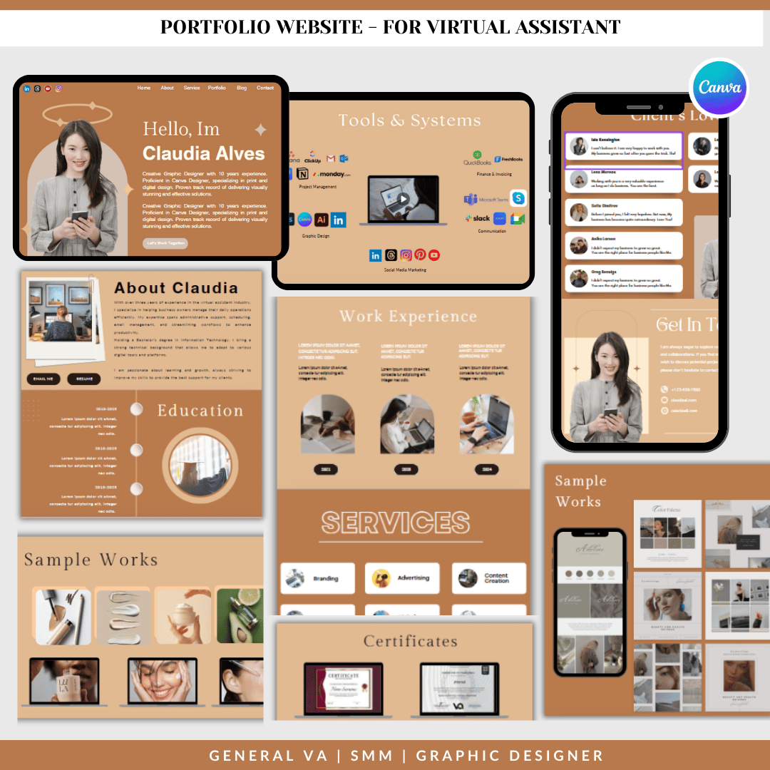 GENERAL VA HONEYSAND PORTFOLIO WEBSITE TEMPLATE FOR NEW VIRTUAL ASSISTANT’S & FREELANCERS TEMP 02